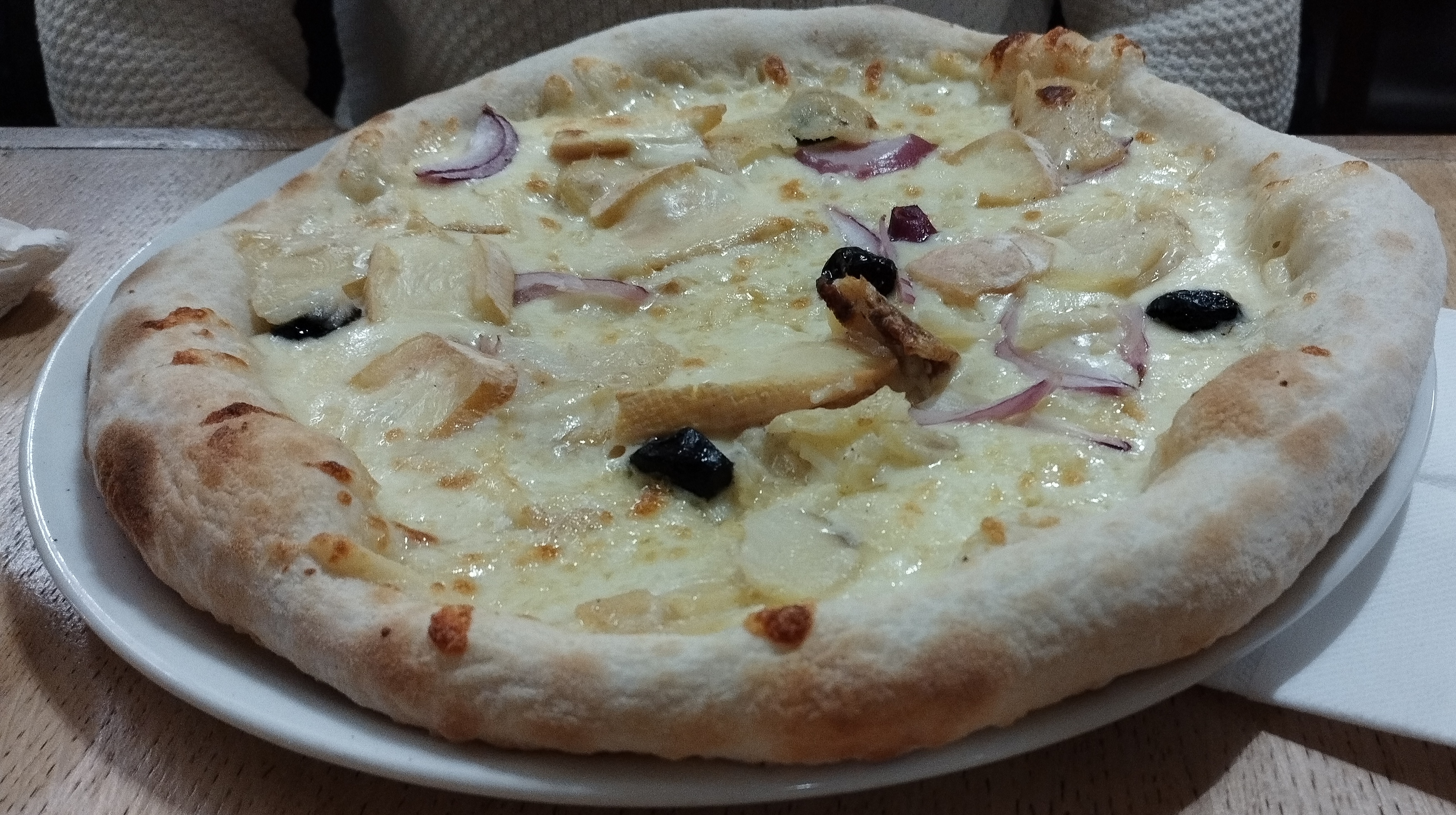 Personnels très accueillants et très beau restaurant. Nous avons pris deux pizze : une saumon et une quatre fromage. Elles étaient excellentes. Nous recommandons.