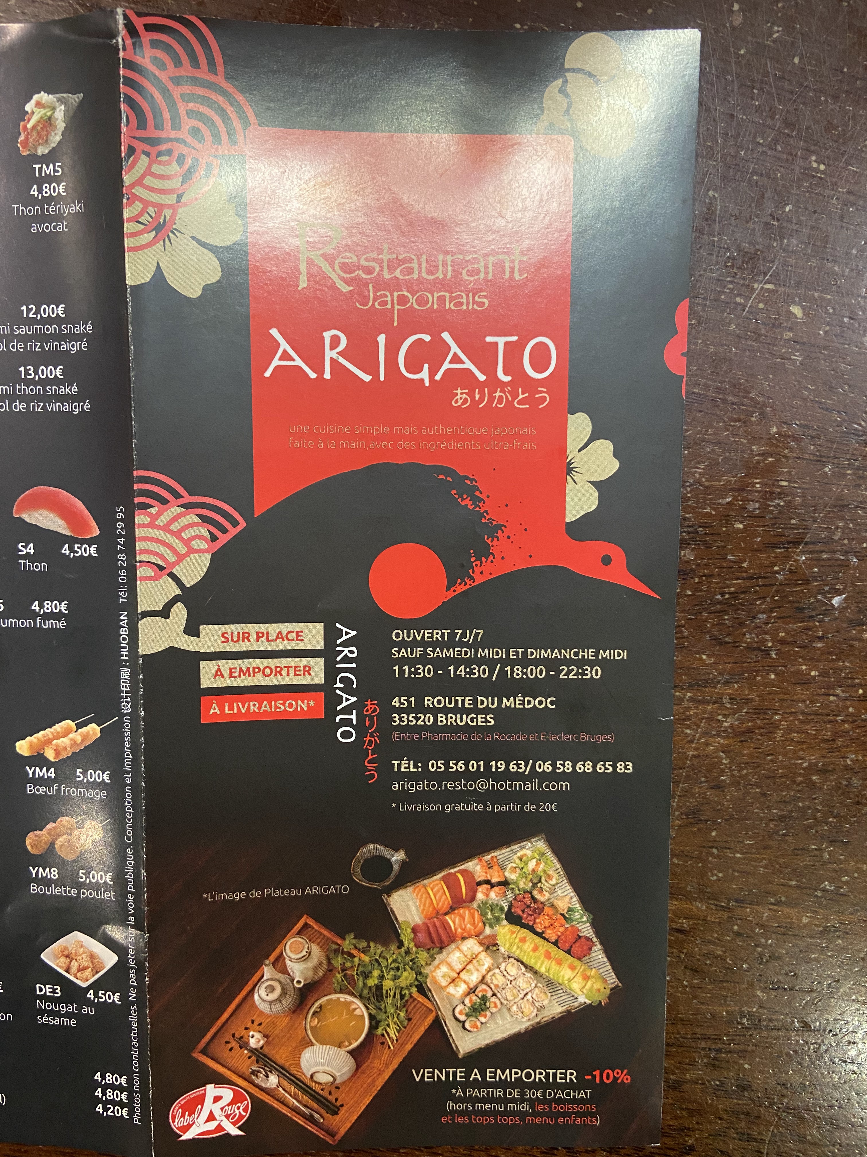 Excellent Japonais. Client depuis désormais 4 bonnes années nous n'avons jamais été déçu par Arigato. Désormais nous pouvons se faire livrer du Bouscat à Eysines ou encore Bruges... Le top ! C'est sans hésiter un japonais que je recommande.
