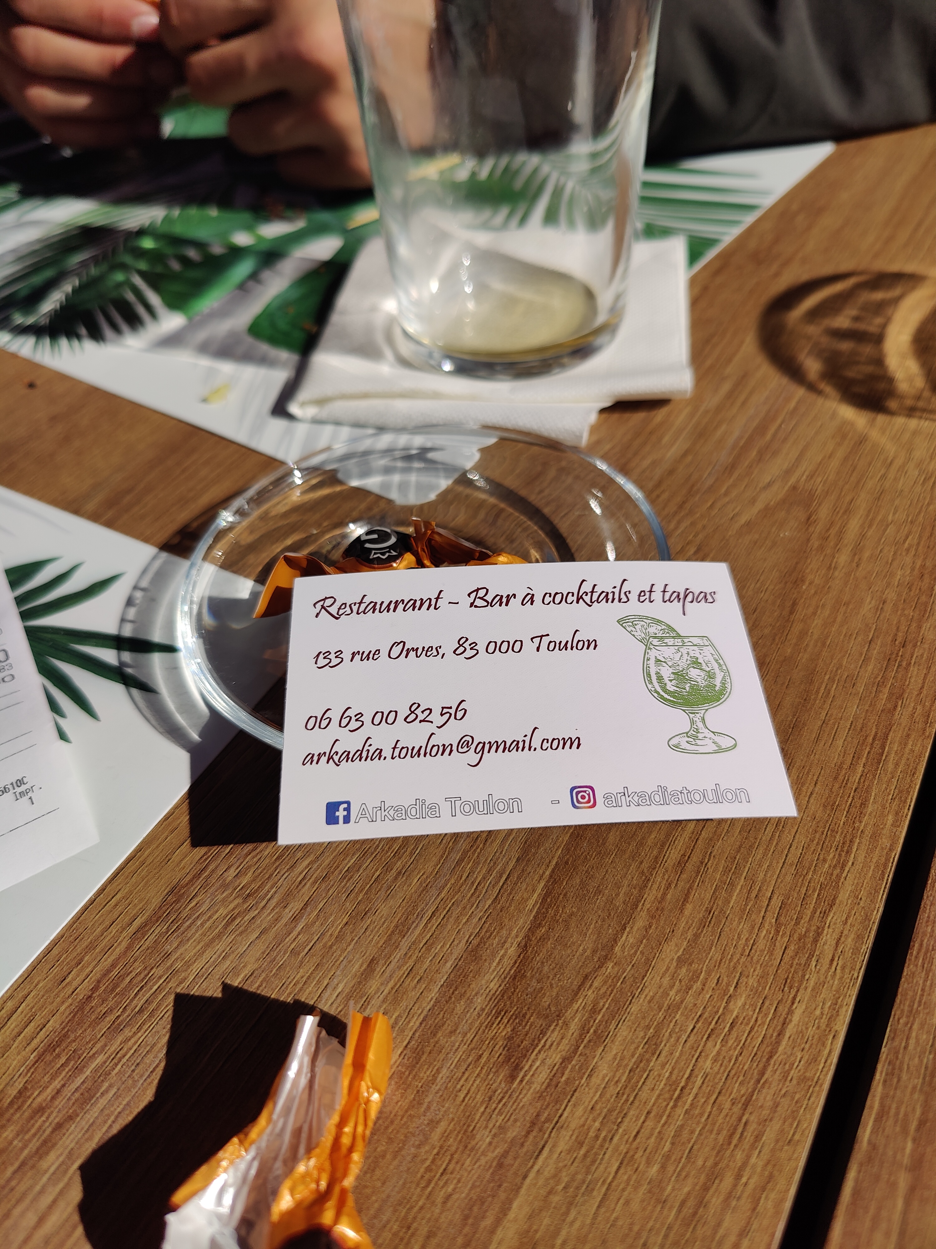 Nous avons pu profiter de la terrasse du restaurant Arkadia situé au mourillon lors de notre passage à Toulon. Nous avons autant apprécié la cuisine que le service. De bons petits plats servis avec le sourire d’une très charmante demoiselle. Merci ! Nous reviendrons !!