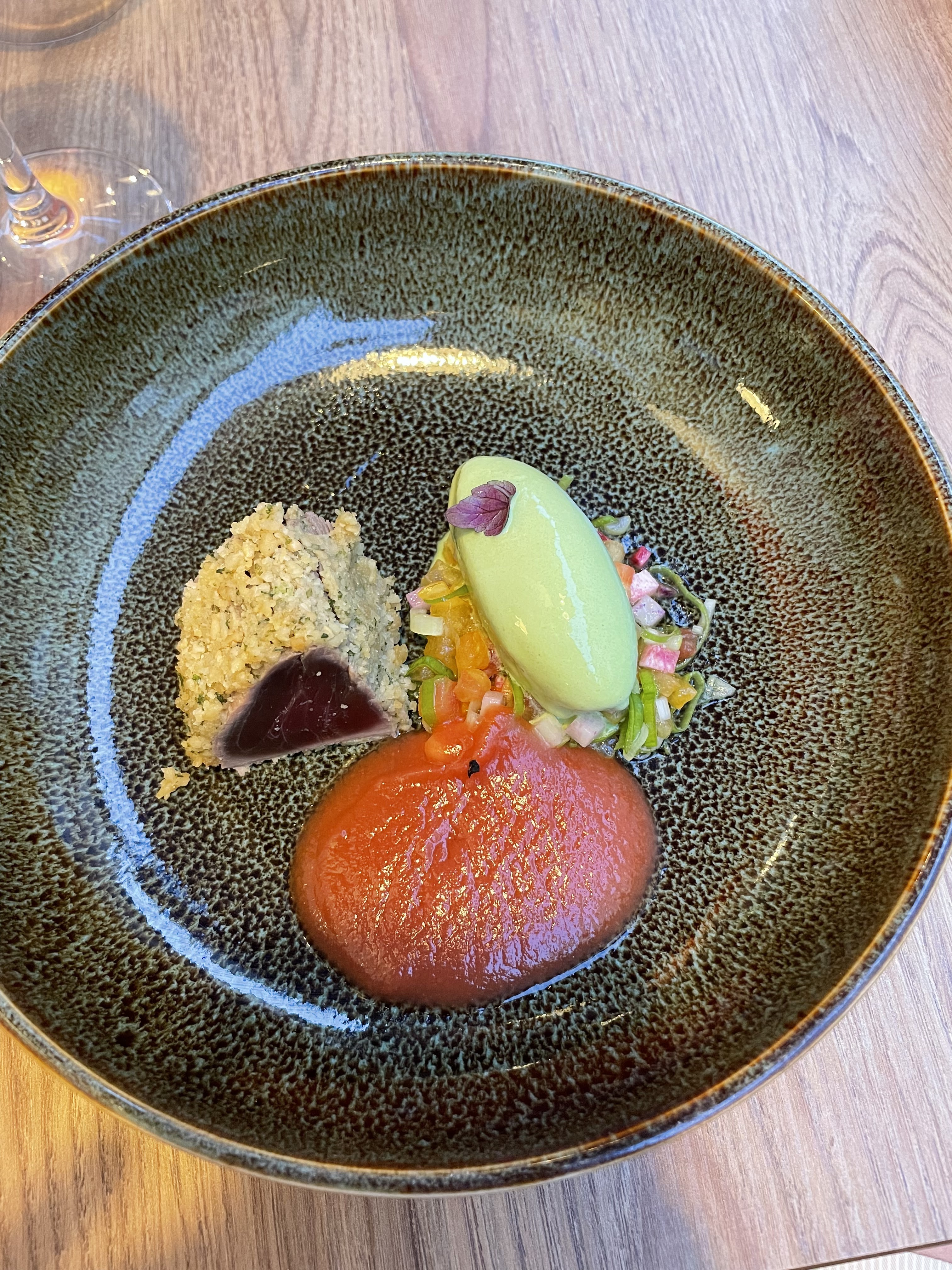 Un plaisir pour les yeux et pour les papilles... De la fraîcheur, des saveurs et un savoir faire.. des cuissons parfaites et un savant mélange de saveurs... Un service aux petits soins et très à l'ecoute de notre timing un peu rapide .. hâte d y retourner pour prendre le temps de déguster et de goûter les desserts.