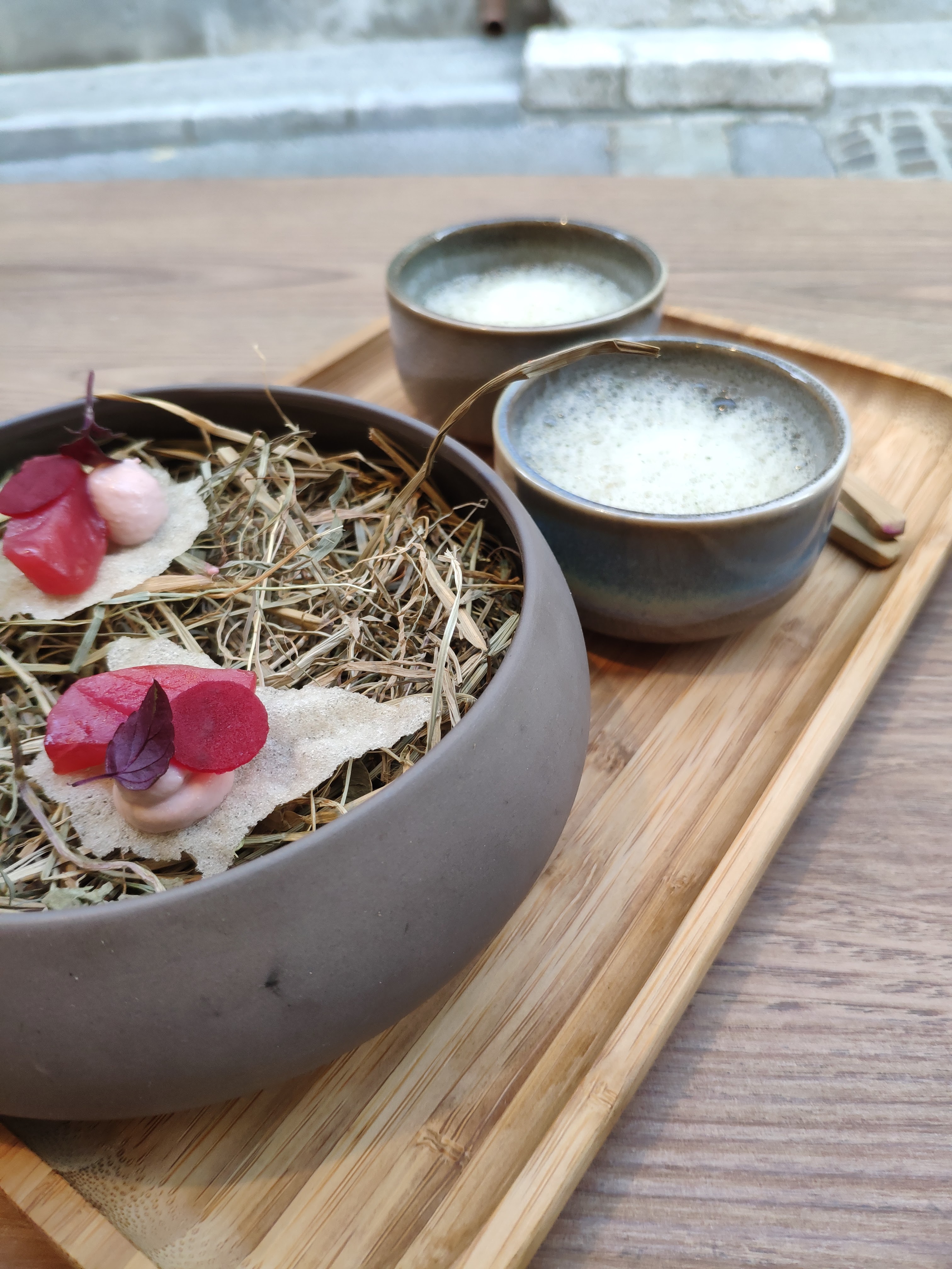 J'ai vraiment été déçue de l'expérience dans ce restaurant. Côté service, c'est vraiment trop long et peu agréable. Demande de pain et d'eau à de nombreuses reprises. L'impression d'avoir été oubliés et de déranger à certains moment. Le point positif est le cadre et la jolie terrasse... Côté cuisine: il y à un réel manque de finesse tant sur les saveurs que sur la présentation. On ne ressent pas la majeure partie des saveurs annoncées. Il y à beaucoup d'éléments gras dans l'ensemble des plats servis. On ne voit pas la dorade, elle est noyée entre l'huile et à la sauce coco qui est déjà grasse. La portion de poisson est maigre. J'ai goûté le tataki de mon ami, également surchargé de gras, panure + sauce + thon, on ne sent pas le goût de celui ci. Le (sur)gras plaît sûrement au plus grand nombre vu la note générale du restaurant... Brioche perdue à 11e, crème montée au kasha et caramel miso (ça donnait envie sur le papier), les goûts se sont perdus au passage... On ressent juste une couche de caramel bien trop épaisse et la part n'est pas généreuse, rien d'original. Il y à un manque d'équilibre et on ne ressent pas la cuisine créative Faire du frais et du local c'est bien mais ça n'explique pas les prix excessifs appliqués. Ça m'aurait peut être moins dérangé si les plats avaient été mieux maîtrisé.