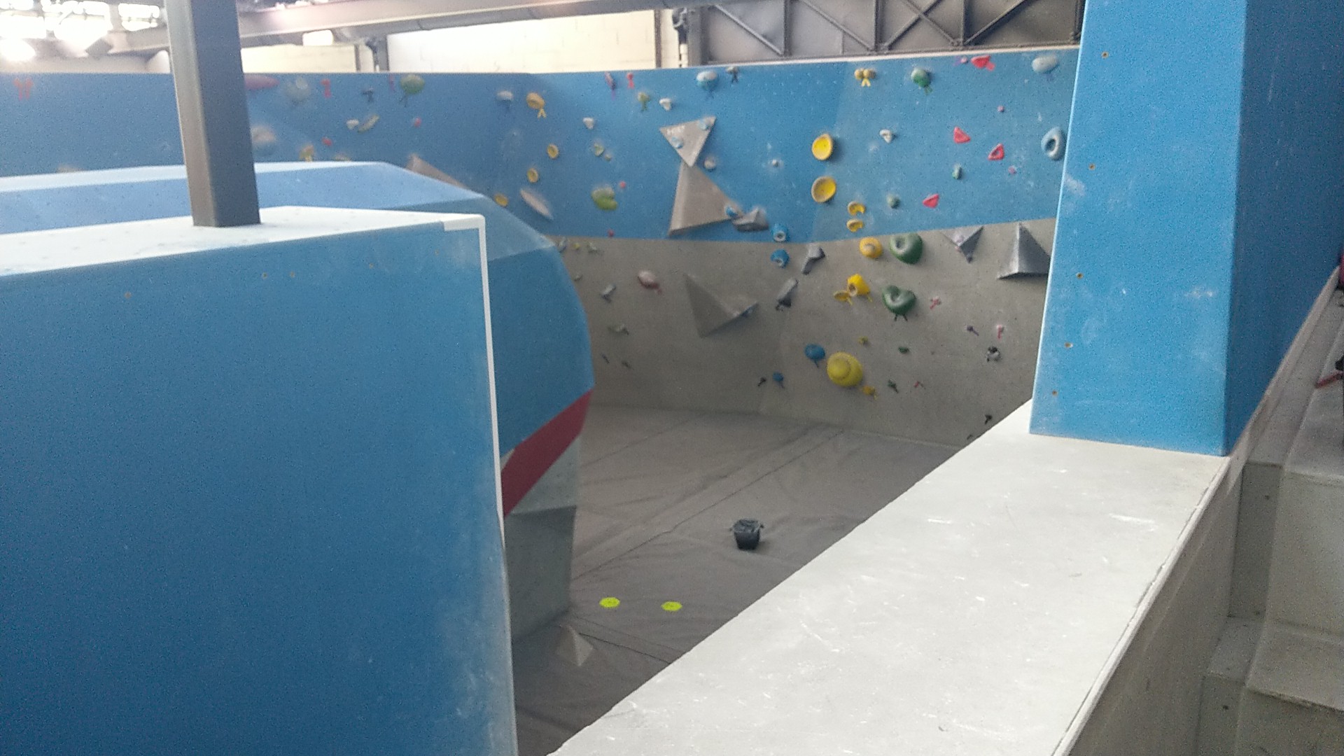 Ouvertures très médiocres. La salle présente plusieurs dangers: a. les derniers mouvs sont souvent aléatoires et on risque de tomber sur quelqu'un d'autre, et b. dans la partie traversées, plein de blocs passent autour de poutres métalliques non protégées par des matelas (je viens de m'écraser la main). Accueil sympa.