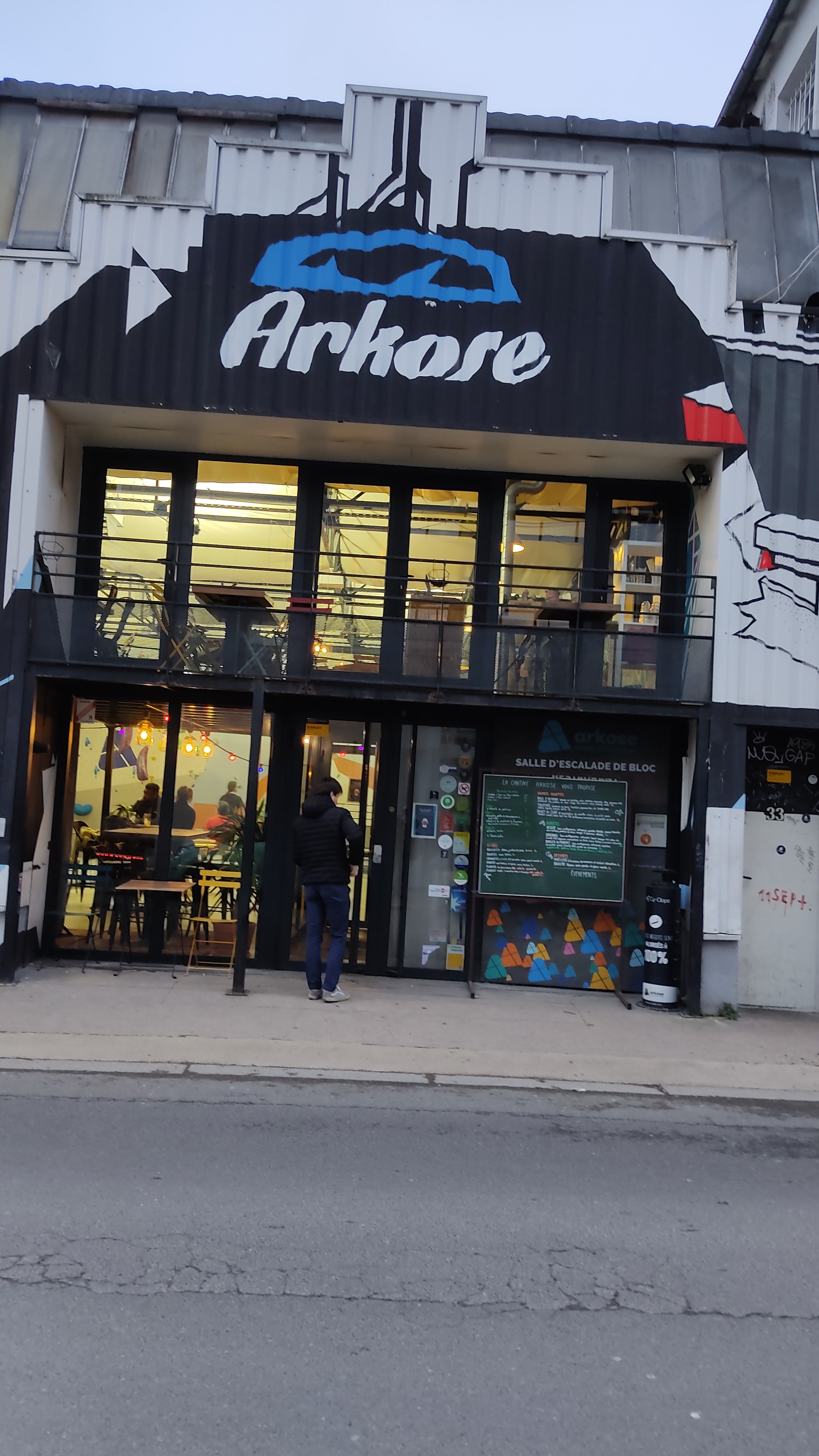 Ma salle Arkose préférée 🥰 pas très grande mais pas bondée non plus contrairement à Arkose Nation qui est pas loin. La cantine est excellente. Petite terrasse à l’extérieur pour boire un coup après la grimpe. On adore ! Petite remarque : la wifi ne fonctionnait pas quand j’ai télétravaillé là-bas. C’est dommage !