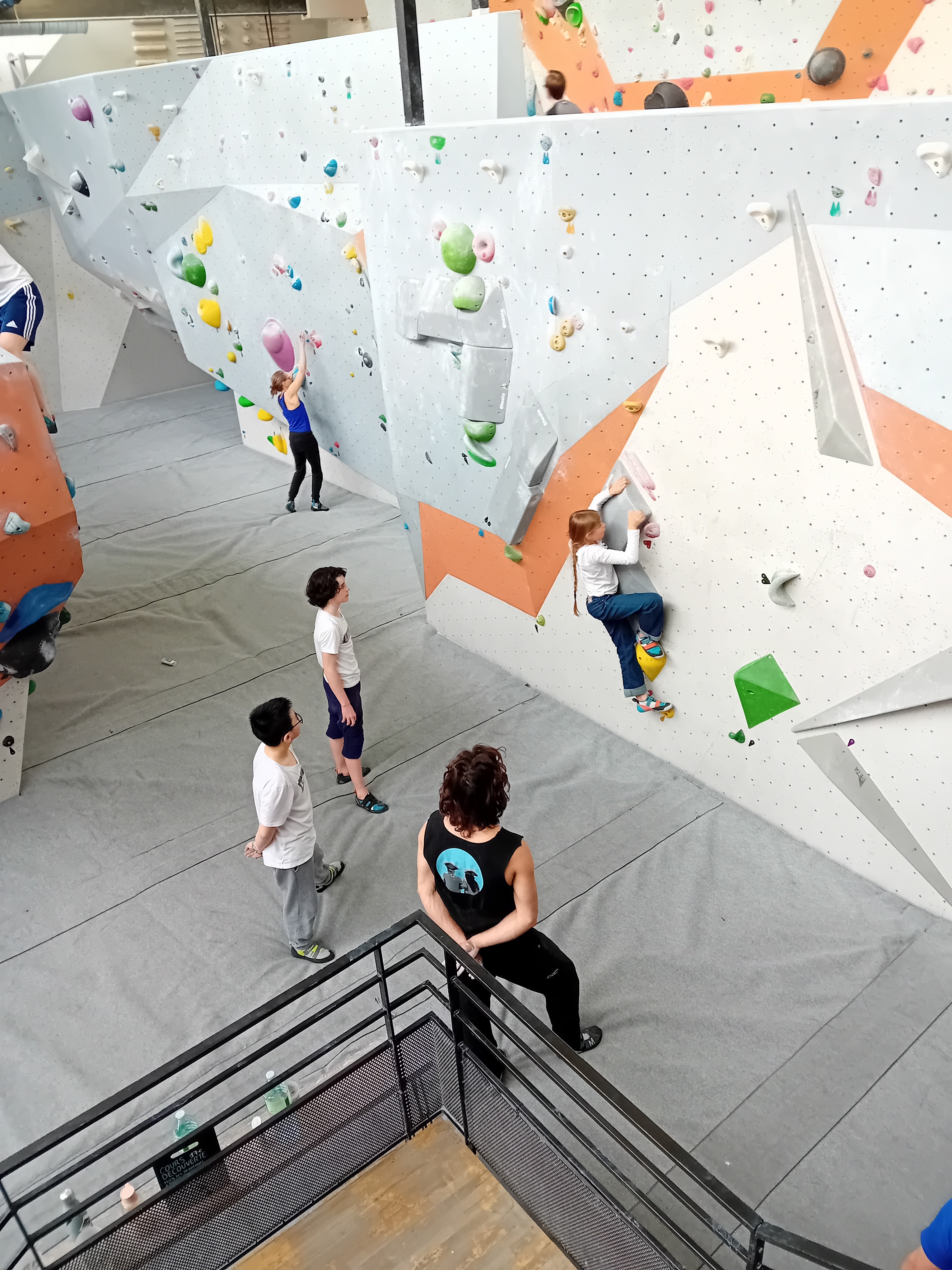 J'adore cette salle Par contre visiblement le we il y a des parents qui croient que c'est un jardin d'enfants... Non ! Tenez vos gosses !!! C'est dangereux, pour les gens en train de grimper et surtout pour les gosses ! (peut-être que ça pourrait être systématiquement rappelé à l'accueil aux familles ???)