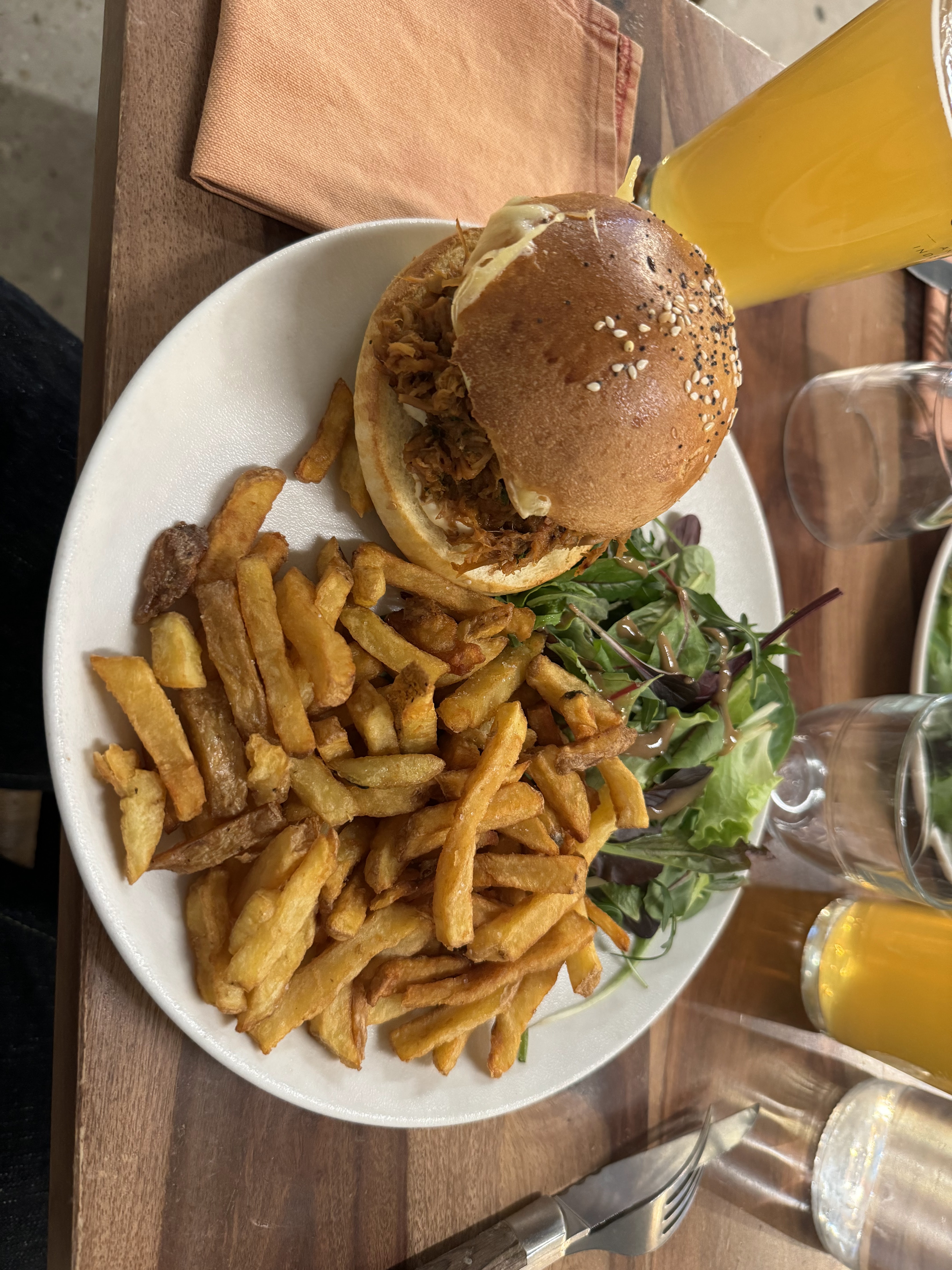 Je suis allée manger avec un collègue dans ce lieu atypique pour un dej professionnel. Nous avons adoré: accueil sympathique, ambiance conviviale et décontractée, une carte alléchante et bien travaillée, et de bons plats frais (j'ai pris le burger veggie au morbier, hum)! Un peu d'attente car il y avait du monde, mais avec les excellentes bières Deck & Donohue, nous n'avons pas vu le temps passer !