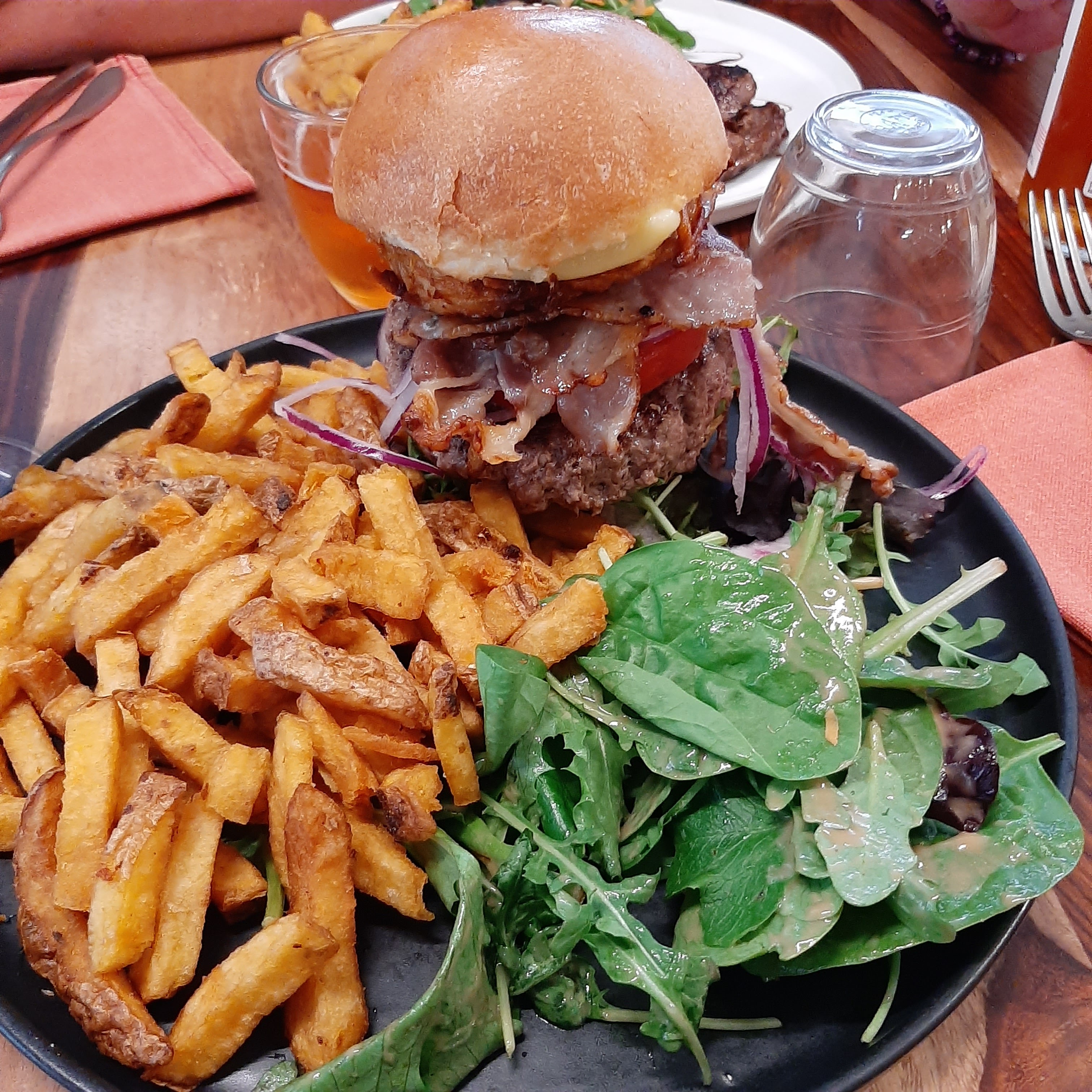 Les burgers et frites sont bonnes. Aussi très bonne playlist si la new wave c'est votre truc. (Je suis pas resté pour les 9 minutes de Bela Lugosi's Dead mais je suis sûr que c'est passé en entier)