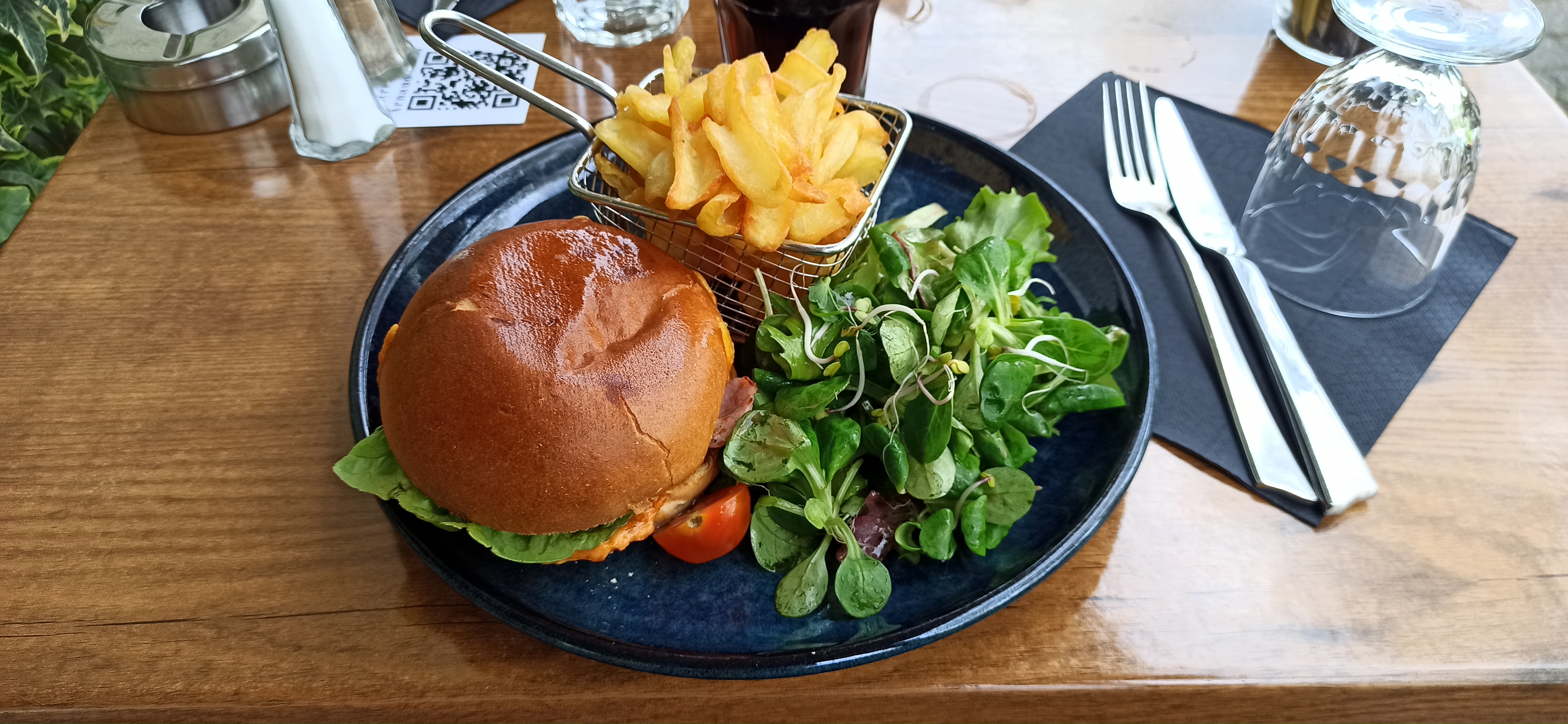 Un merci à Ali ke serveur Il est très accueillant. Nous avons pris le Burger. Il était excellent. Accompagné d'une salade mache fraiche et des frites faites maison Très bonne adresse Je recomande😀