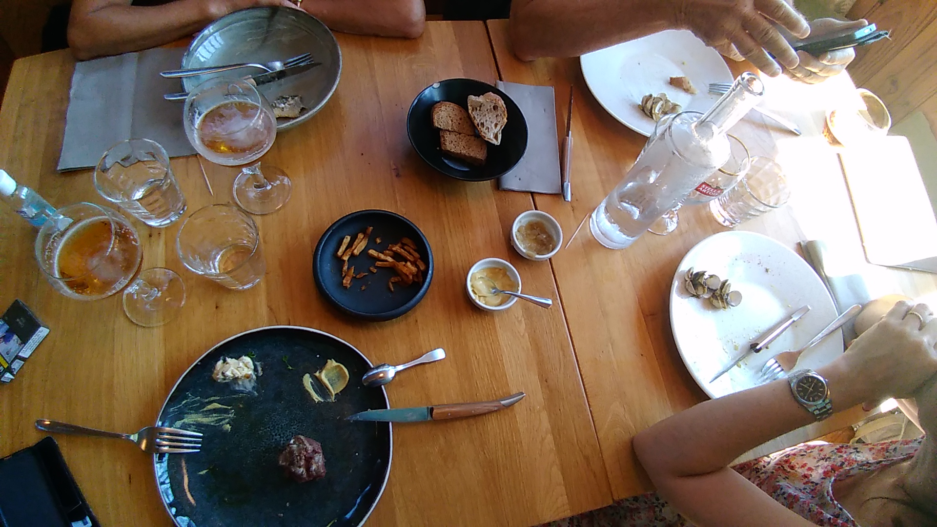 Excellent comme à chaque fois, le service impeccable, les cocktails sont délicieux, les plats également. Pour les amateurs, c’est pour l’instant ici qu’on y mange les meilleurs couteaux. Et un petit plus, vraiment pas négligeable, le petit coin fumeur super sympa aménagé en dehors de la terrasse. Même étant fumeuse j’ai apprécié. On recommande largement !