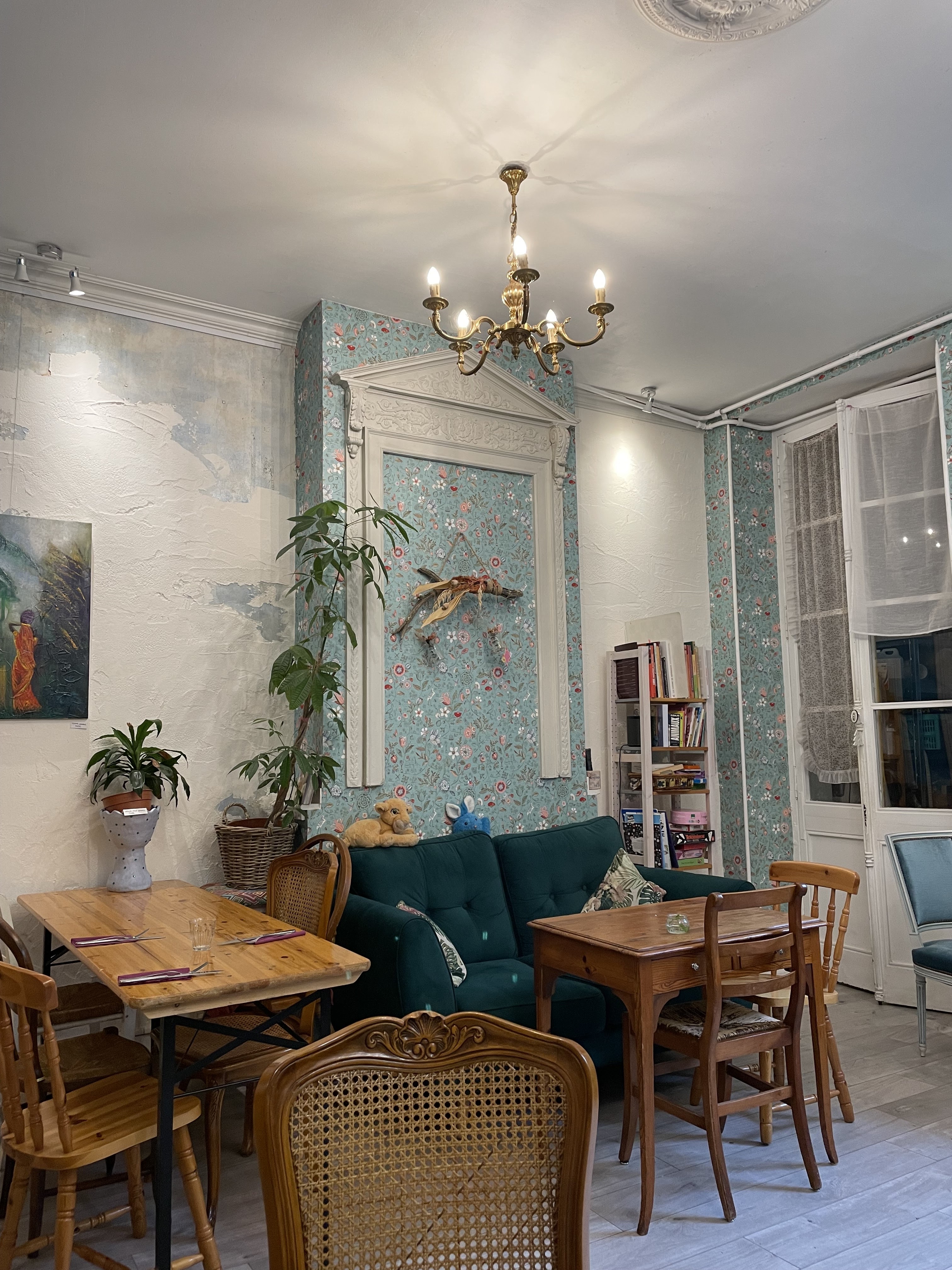 Ambiance dans un style bobo, ou rien n’est identique, vous êtes très bien accueilli dans ce petit restaurant. Vous êtes très bien conseillé car il y a tellement de bonnes choses à déguster que vous ne savoir pas quoi prendre. Bien sais à l’intérieur ou à l’extérieur, vous pouvez déguster au calme votre repas. Un large choix de thés de très bonne qualité.