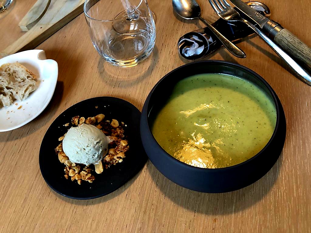 Superbe découverte au détour d’une randonnée Service très agréable et cuisine surprenante par des associations inattendues et qui fonctionnent parfaitement