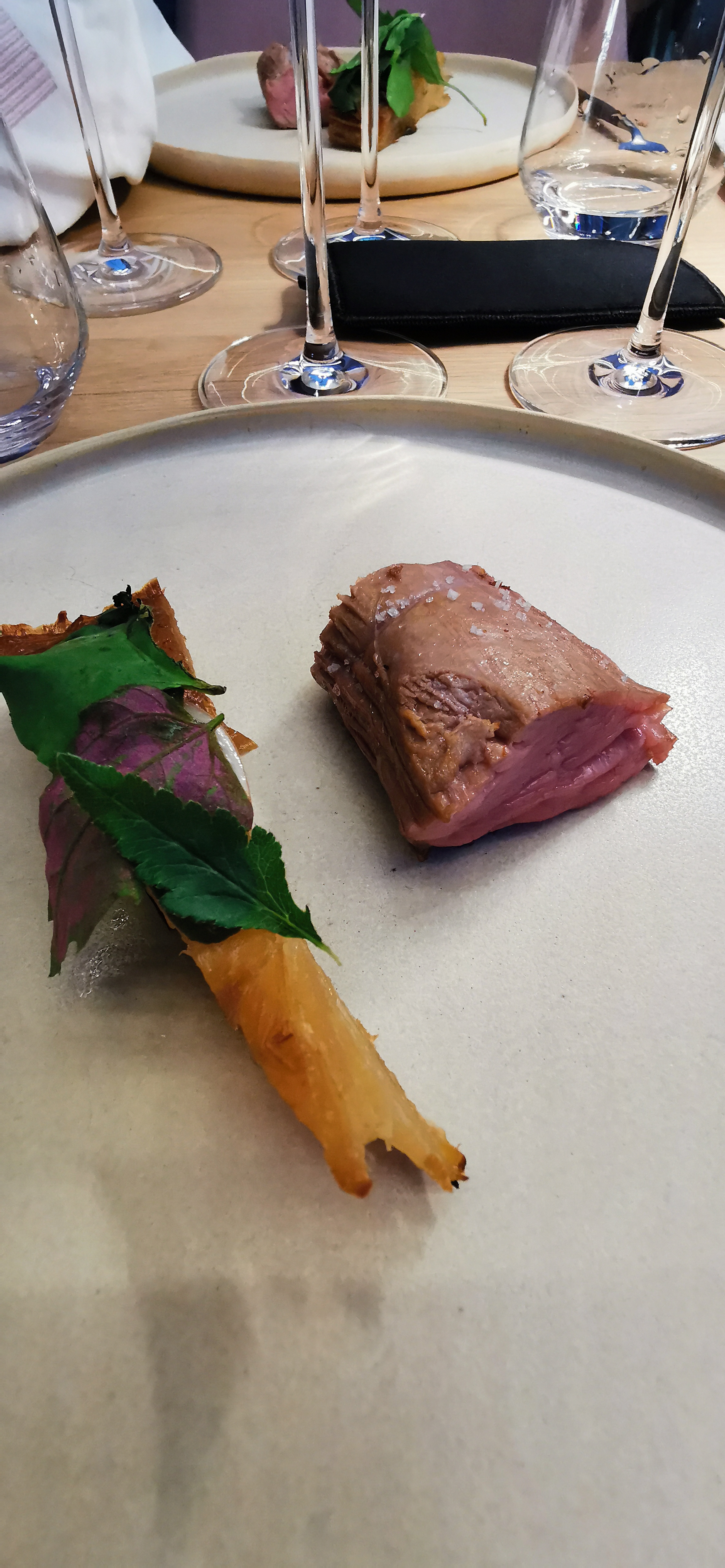 Très belle découverte, cuisine chic et raffinée, service professionnel et très agréable.. juste le prix que je trouve un peu élevé par rapport au menu imposé (70€ / 4services, quantité très limité, nous avons mangé la viande de porc en plat) et l’éclairage reste à revoir, une ambiance plus tamisée serait d’avantage agréable