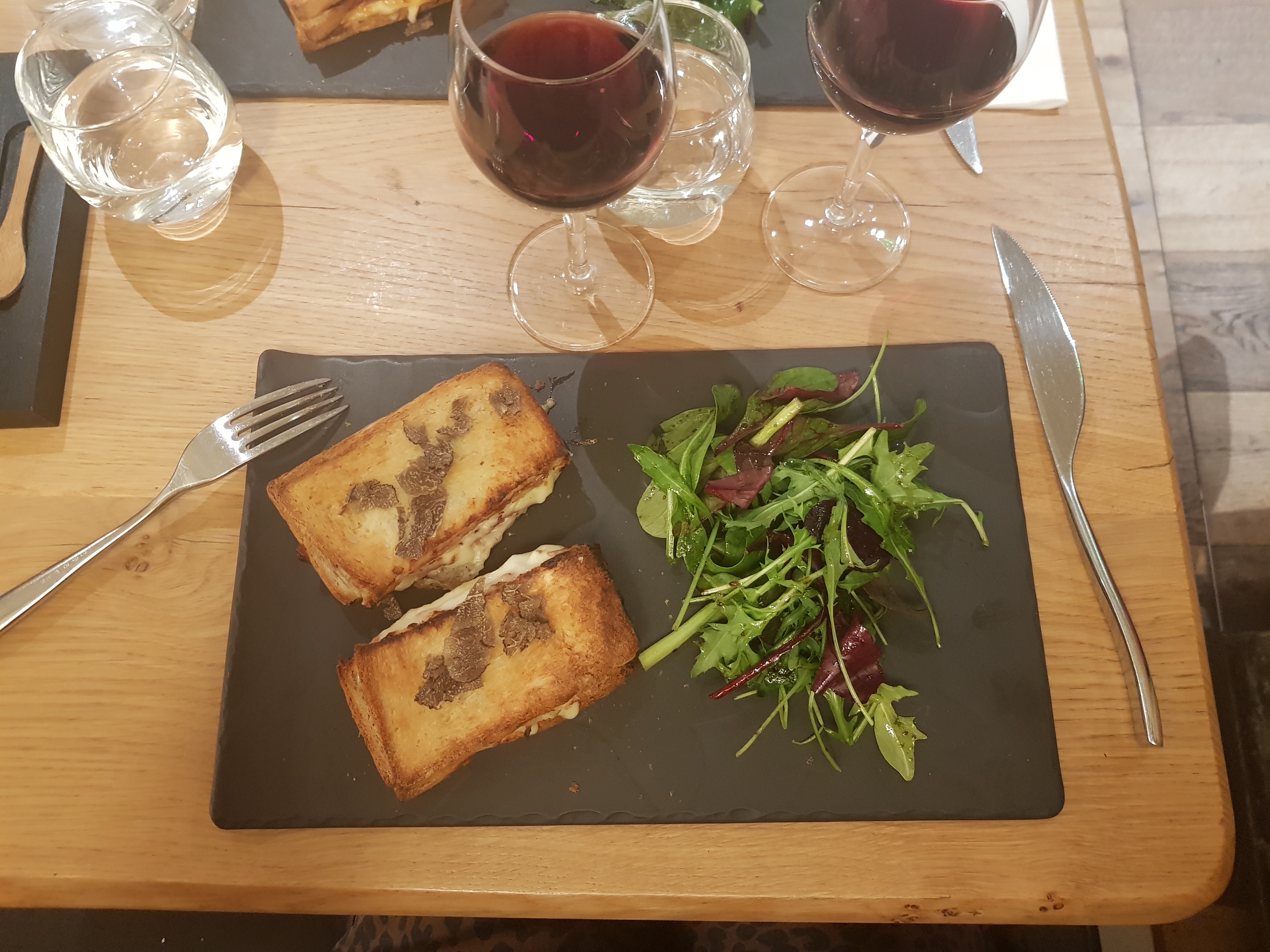 Une très belle découverte. Rien à redire , tout est bon, la truffe est présente en finesse partout de l'apéro au dessert. Qui sont d'ailleurs très étonnant . La planche est variée et bien garnie . Le croque monsieur est un bon début pour ceux qui ne connaissent pas la truffe. La salle n'est pas grande mais agréable et bien décorée. Nous reviendrons c'est certain .