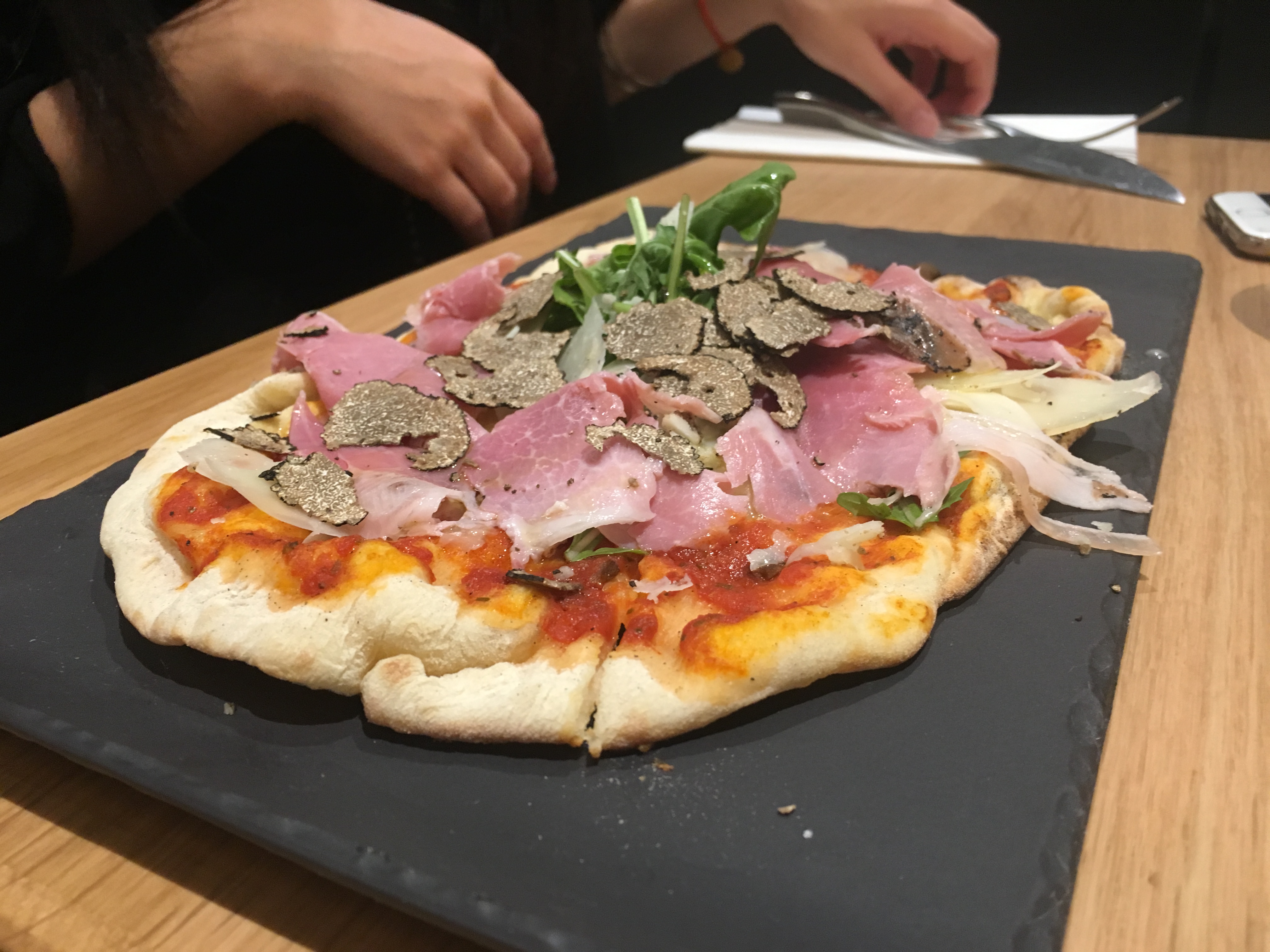 Restaurant décevant. Pour avoir fait plusieurs établissements spécialisés dans la truffe, ce restaurant n’est pas au rendez vous. Tagliatelles sans goût de truffe et écoeurante par la crème. Pizza sèche. Parmesan coupé depuis longtemps. Je ne vous le recommande pas