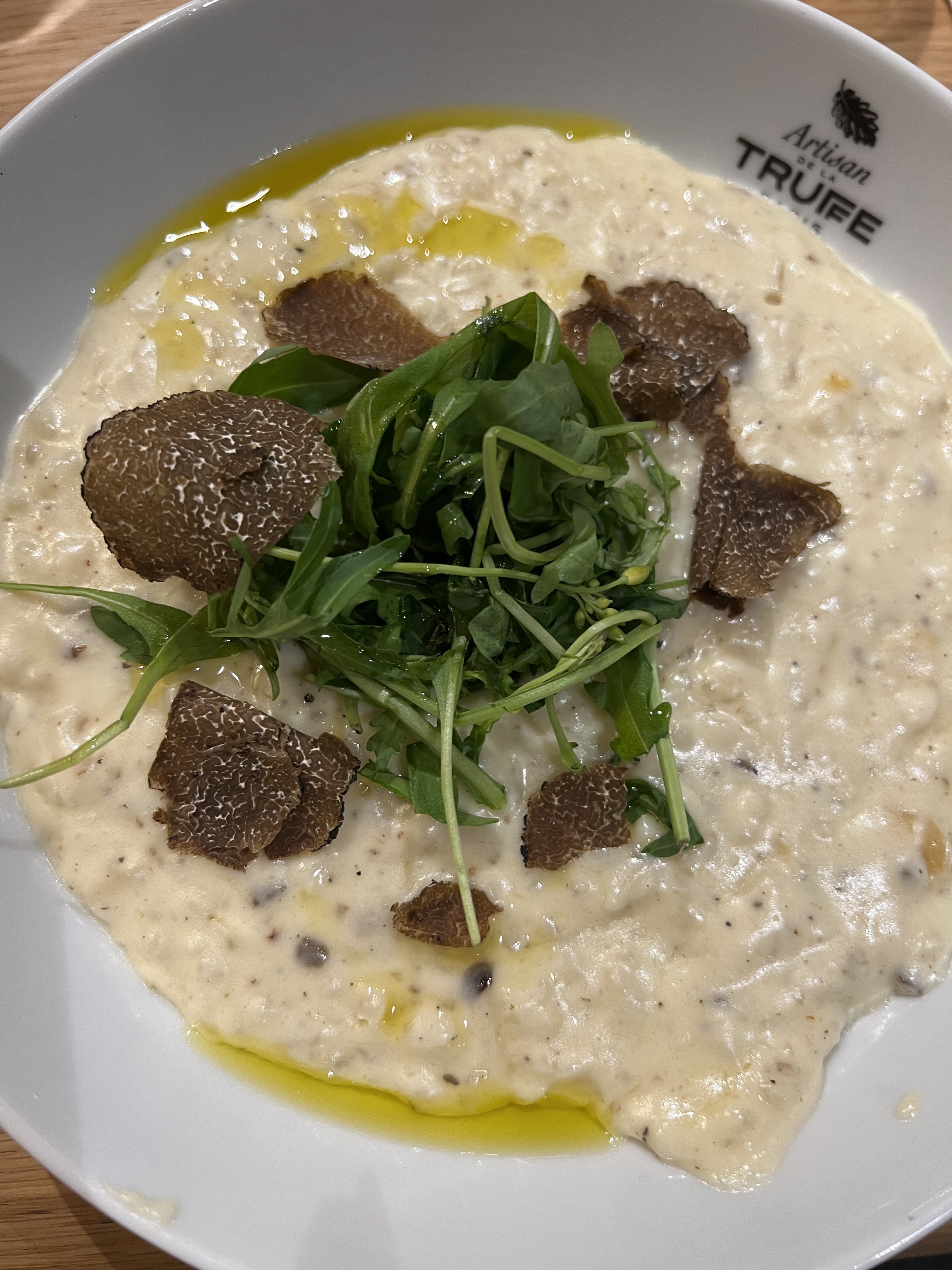 L'huile de truffe est bonne, c'est bien pour ça qu'ils en mettent partout. Par contre, leur truffe noir n'a pas de goût, les plats sont réchauffés (d'ailleurs, quel intérêt de mettre la cuisine en mode ouvert alors qu'il n'y a aucune cuisine ?). Le service est très bof pour des prix aussi élevés, et la décoration fait plus penser à un kebab qui se la joue class qu'autre chose. Vraiment , je fais mieux à la maison avec une huile de truffe, du bon parmesan et une vraie recette de risotto. Je ne recommande pas.