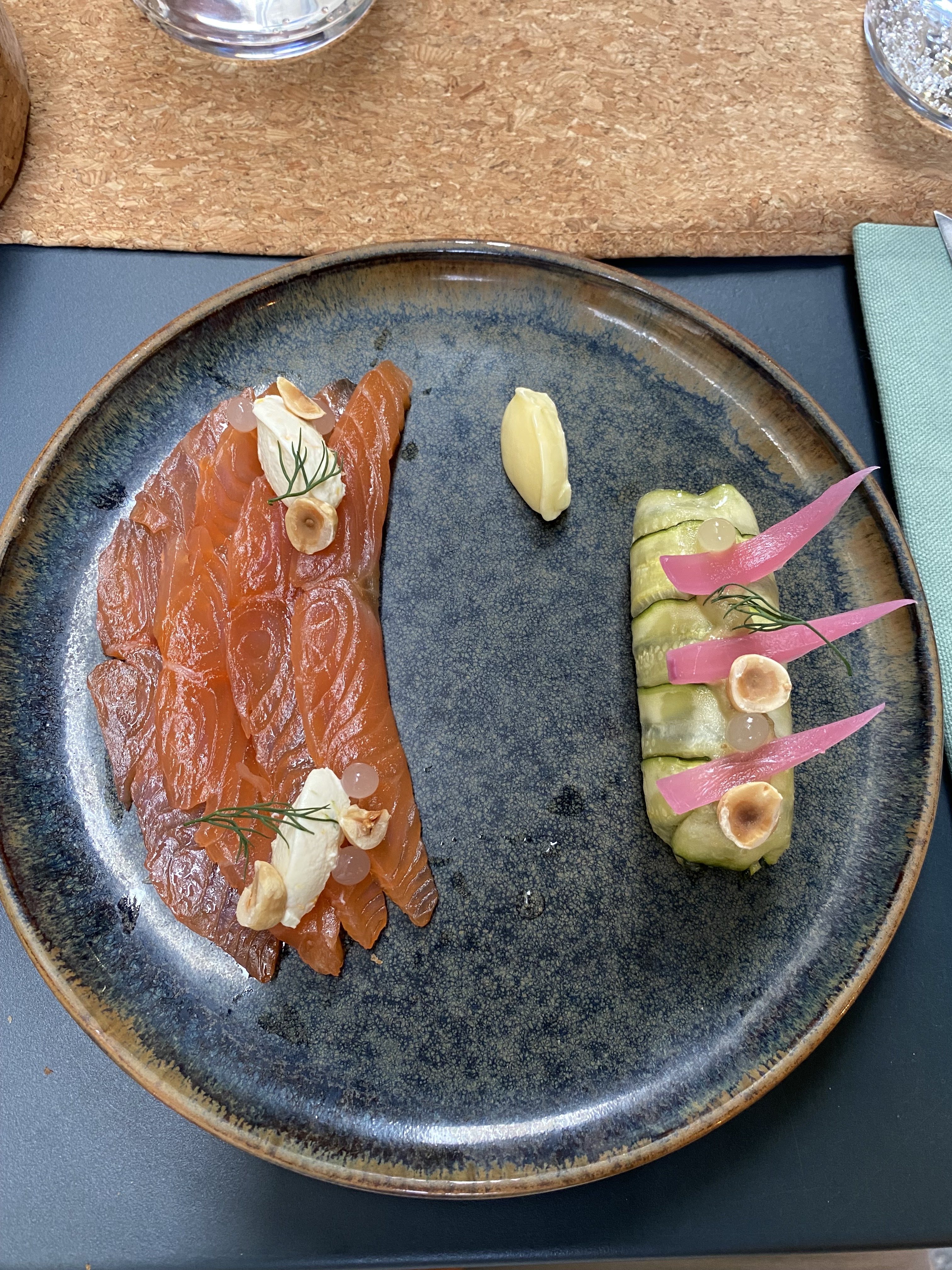 De jolies assiettes fleuries avec une grande variété de saveurs et de textures. Quand le croquant de l'asperge rencontre la rondeur de l’œuf parfait, ou l'acidité du beurre blanc aux billes citronnées le gras du saumon juste cuit. Et en plus, avec le nombre réduit de couverts, les cheffes de l'Artisane seront aux petits soins pour vous !