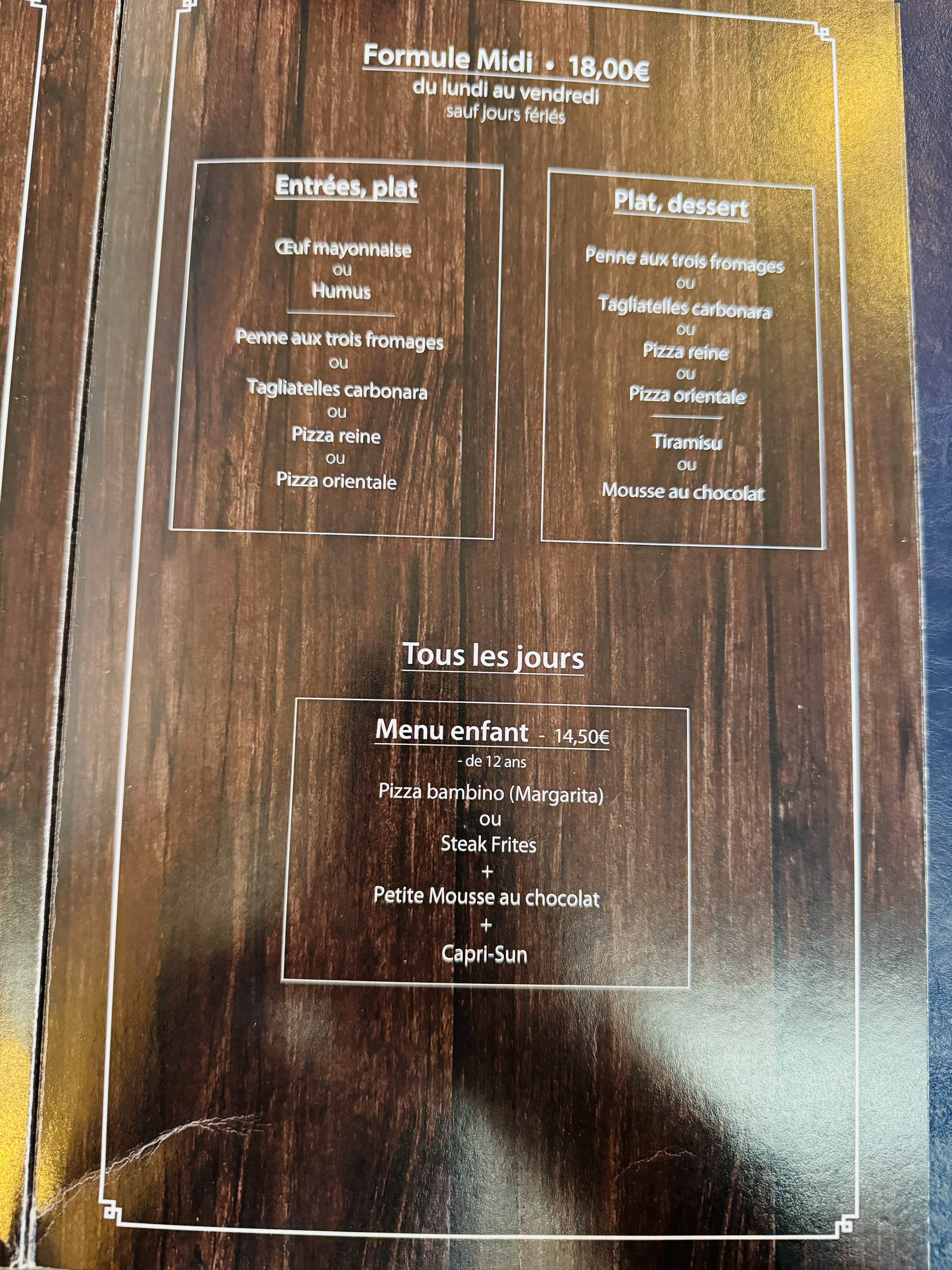 Bonne carte et très bon restaurant, on adore venir en famille mais aussi entre amis, très convivial.