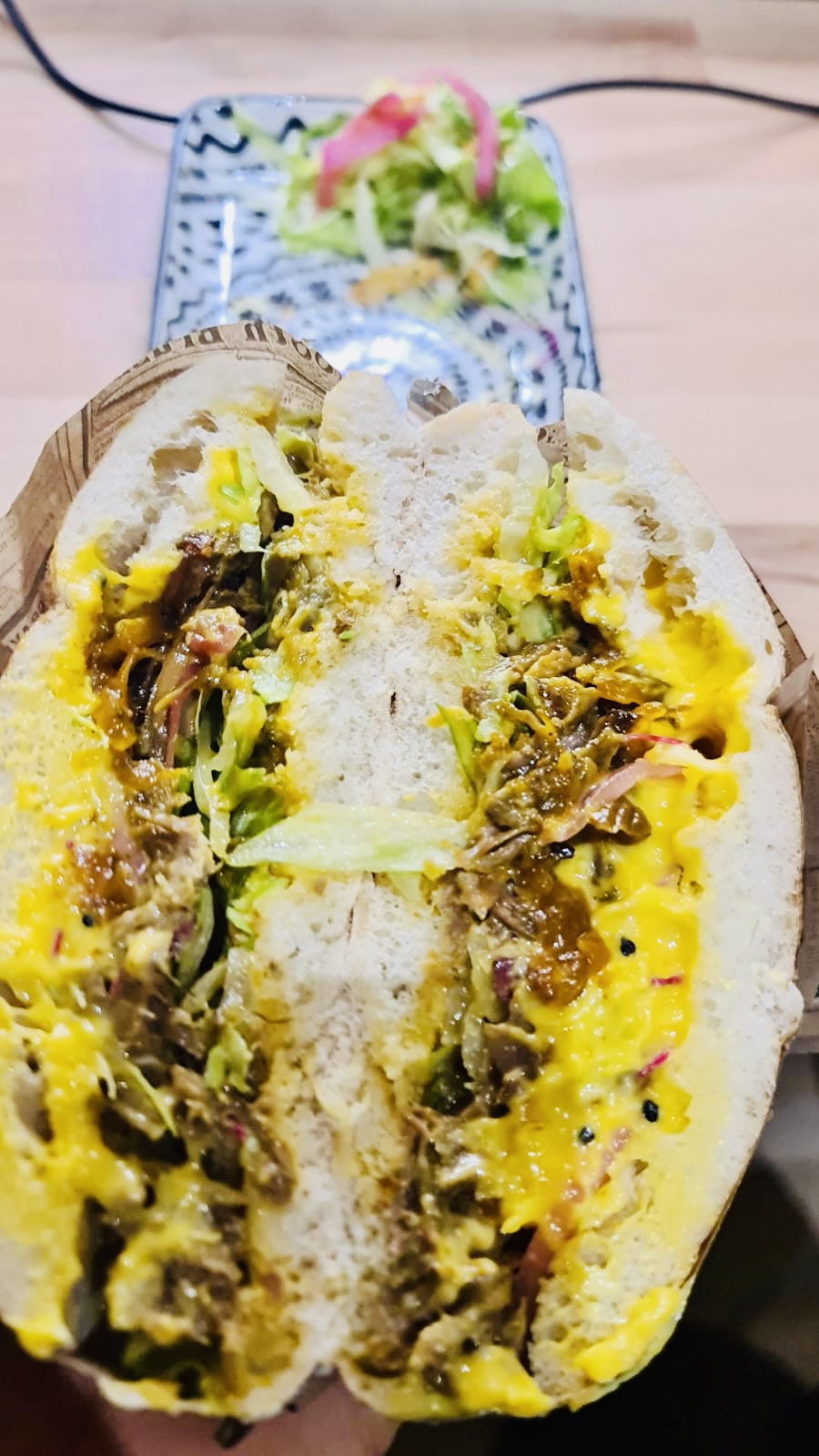 Ma jolie découverte aujourd’hui pour le déjeuner ! Effiloché de bœuf goûteux et parfaitement relevé ! J’ai terminé par une note sucrée avec de délicieuses pâtisseries et un thé à la menthe ! Très gourmand. Je recommande Le chef est souriant et généreux !