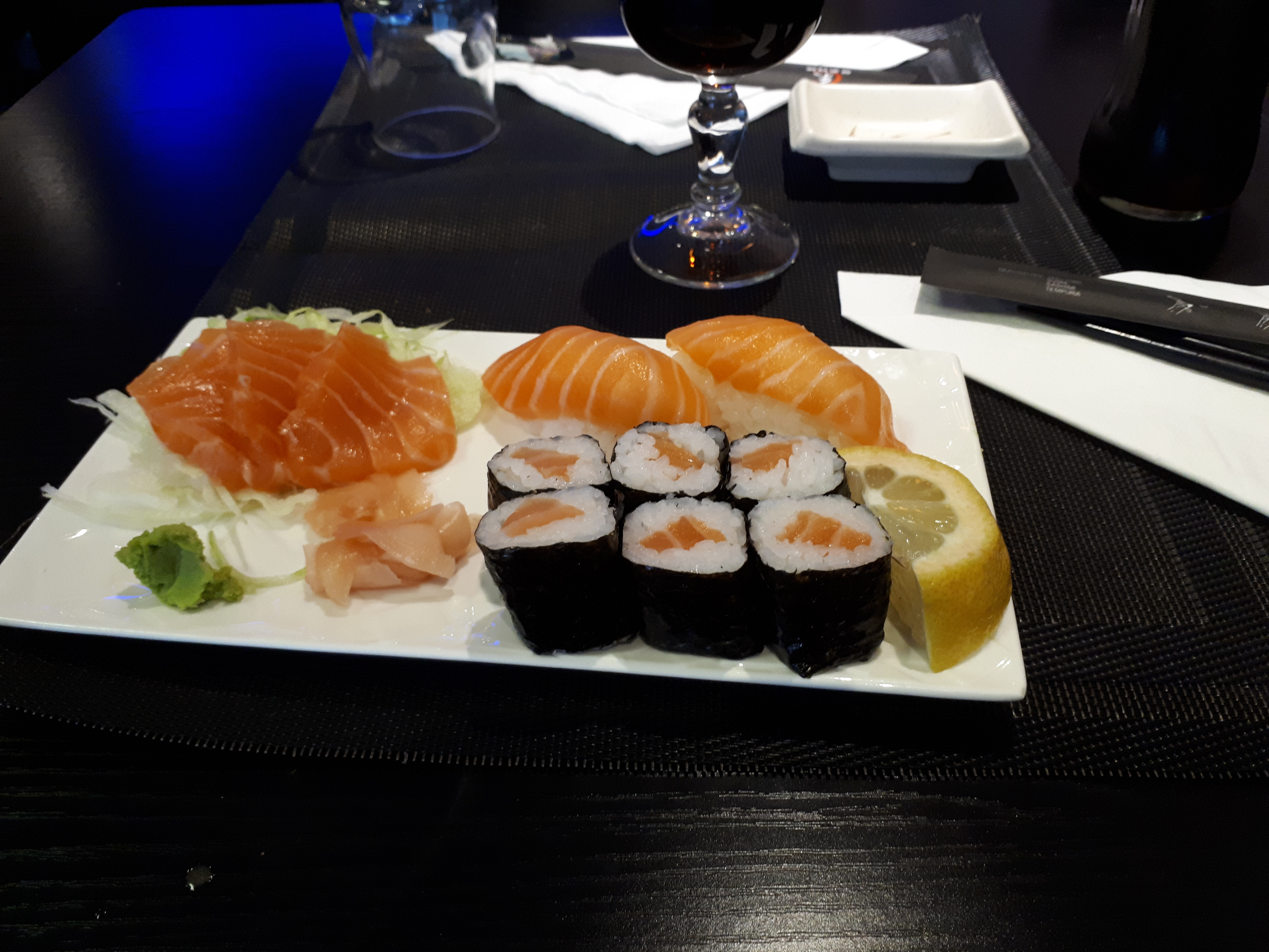Assez particulier. Tout de A à Z était insipide. On a trouvé les tranches de saumons du chirashi trop fine et y en avait peu, mais des écailles ! Sinon les nems sont gras et sans saveur. Les gyozas froids et huileux. Le riz du chirashi était correcte, mais sans chichi. Quant à la brochette de poulet, elle manquait d'assaisonnement. Je mets 3 étoile pour la quantité.