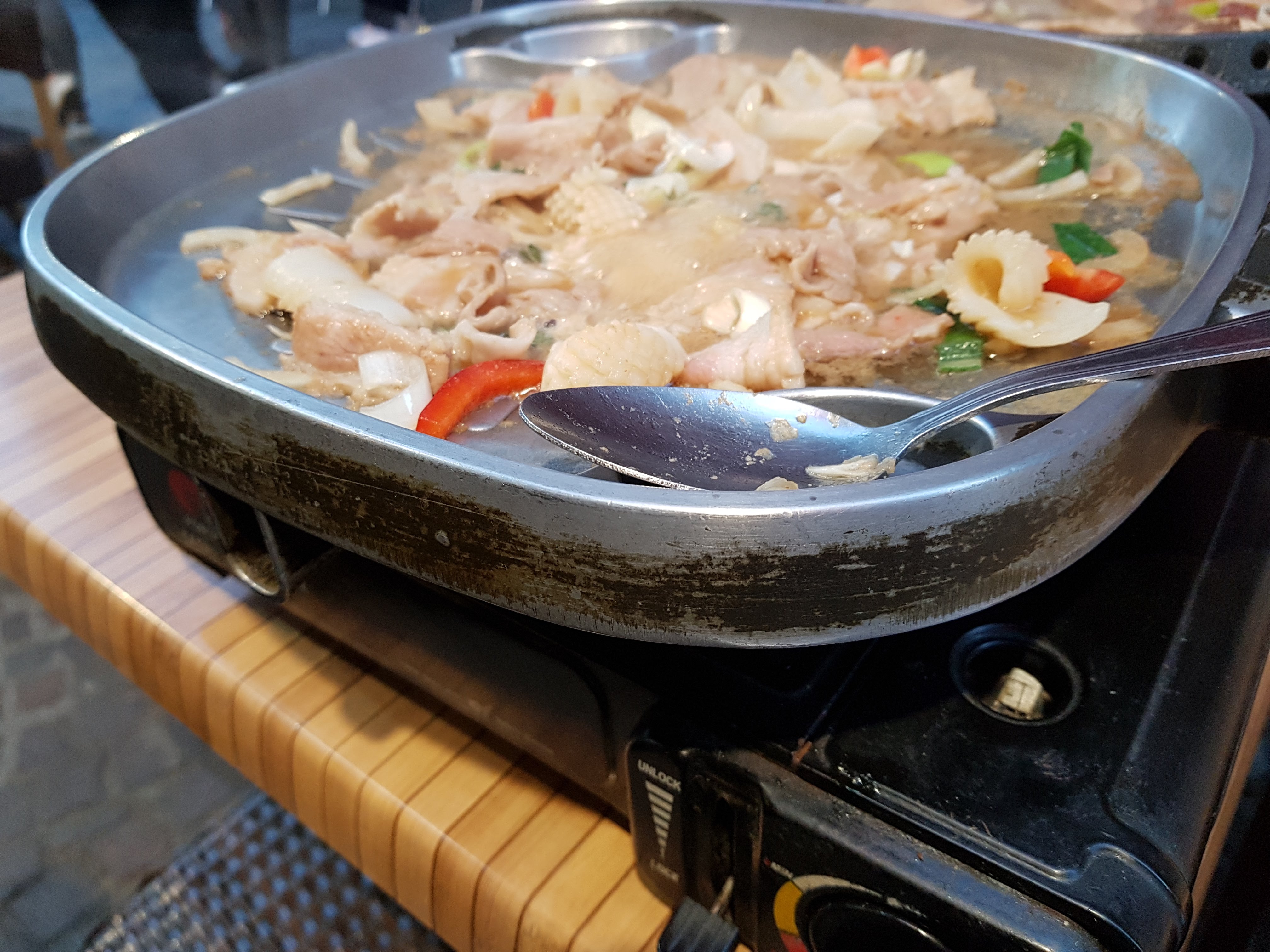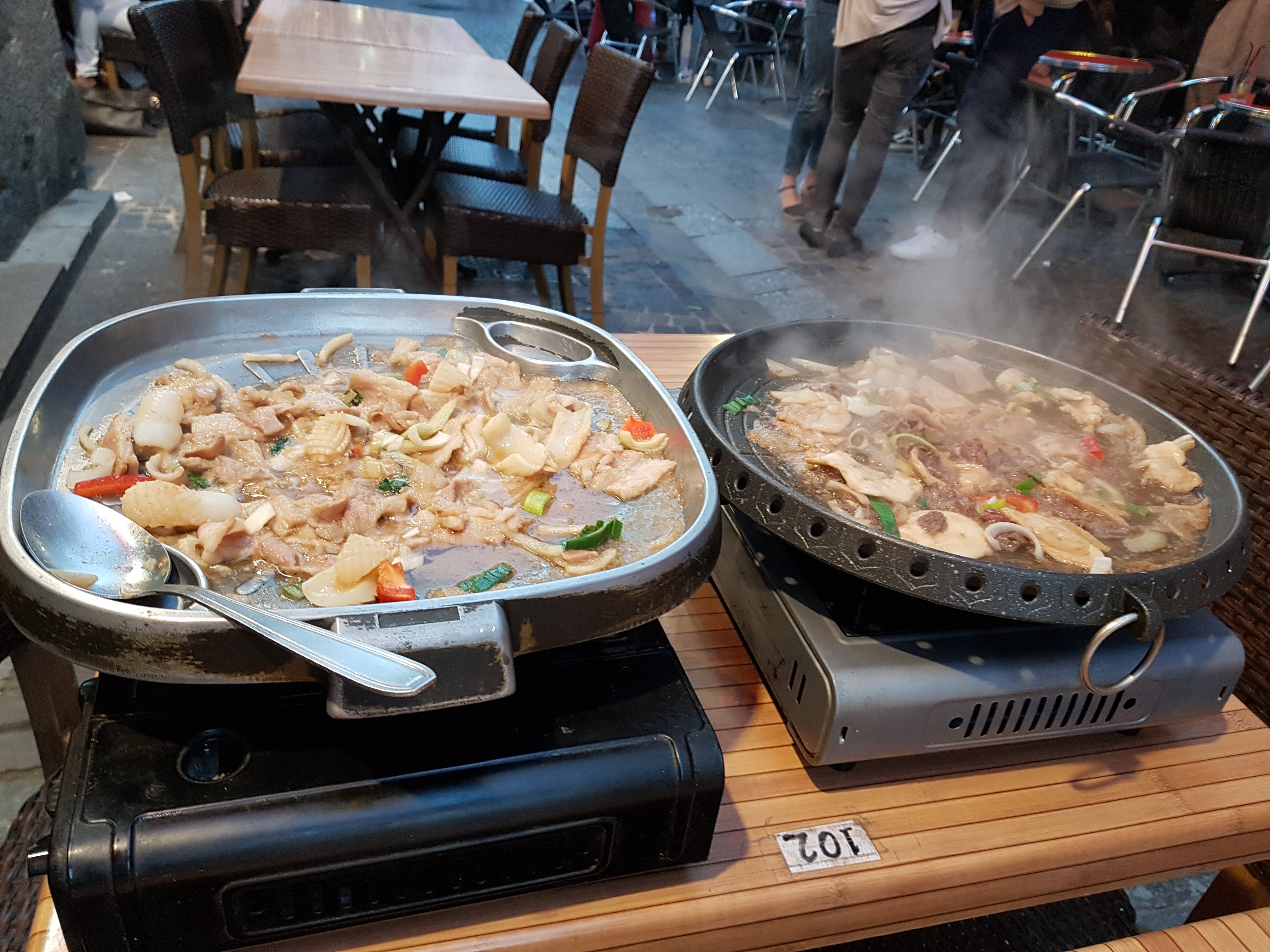 Excellent restaurant coréen sur 2 étages. Nous avons dégusté un barbecue personnalisé. Au choix poulet, boeuf, porc ou mix des 3. On vous apporte le barbecue et vous gérez la cuisson. Les morceaux de viandes, accompagnés de légumes, baignent dans une sauce délicieuse qui se caramélise et fini par les entourer. Nous voulions tous en reprendre malgré notre satiété. Seul bémol, les serveuses qui pourraient être plus aimables.