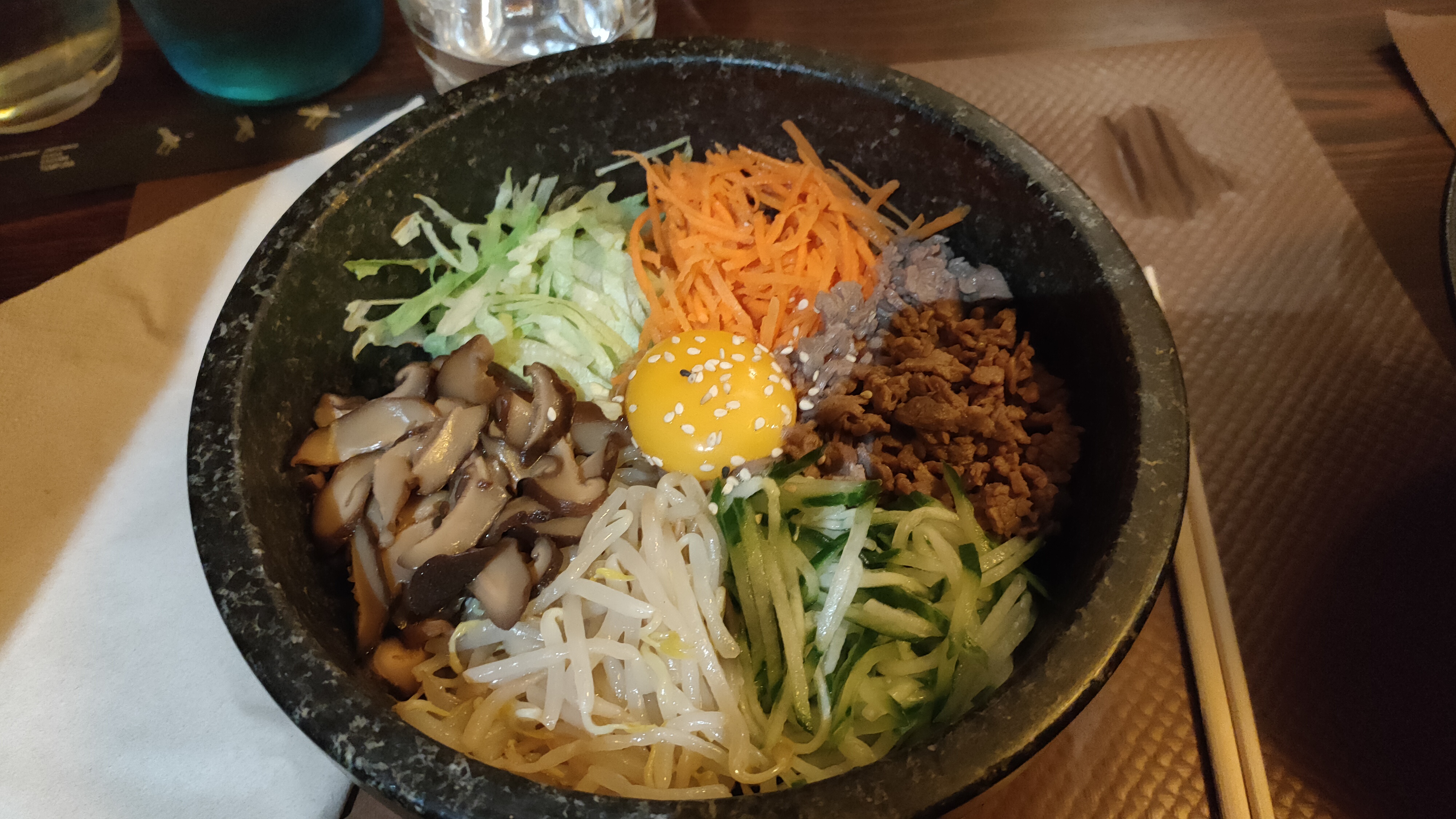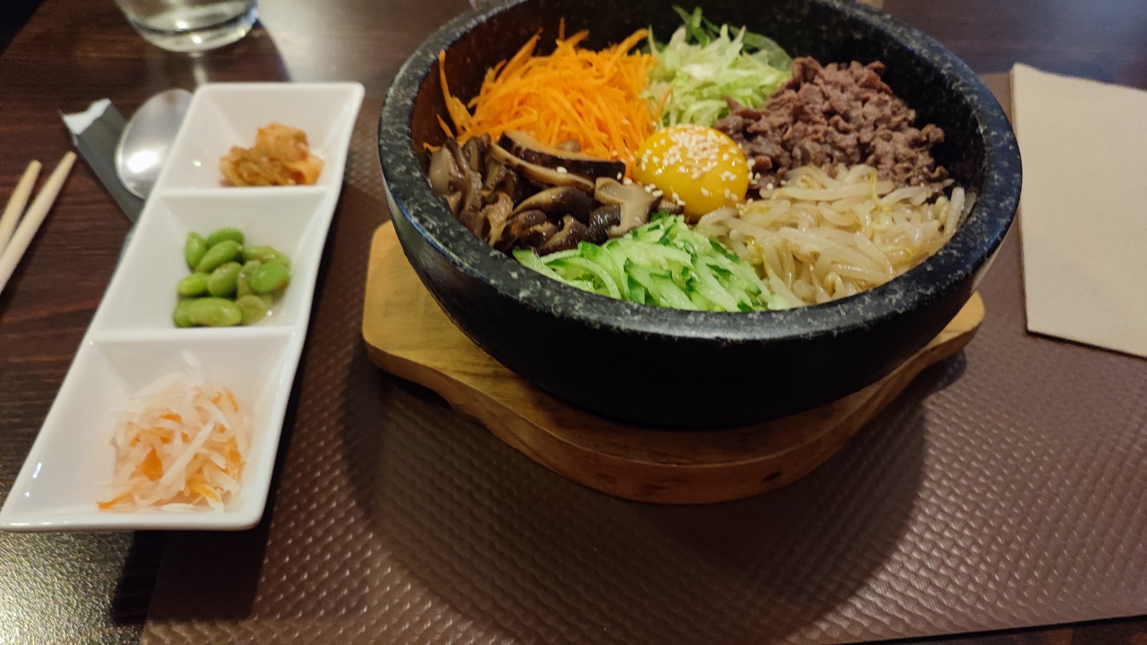 Très bonne adresse, on s'est régalés. Le bimbimbap au boeuf est une tuerie. Le plat est servi bien chaud dans un bol en fonte. Ce restaurant vaut le détour.