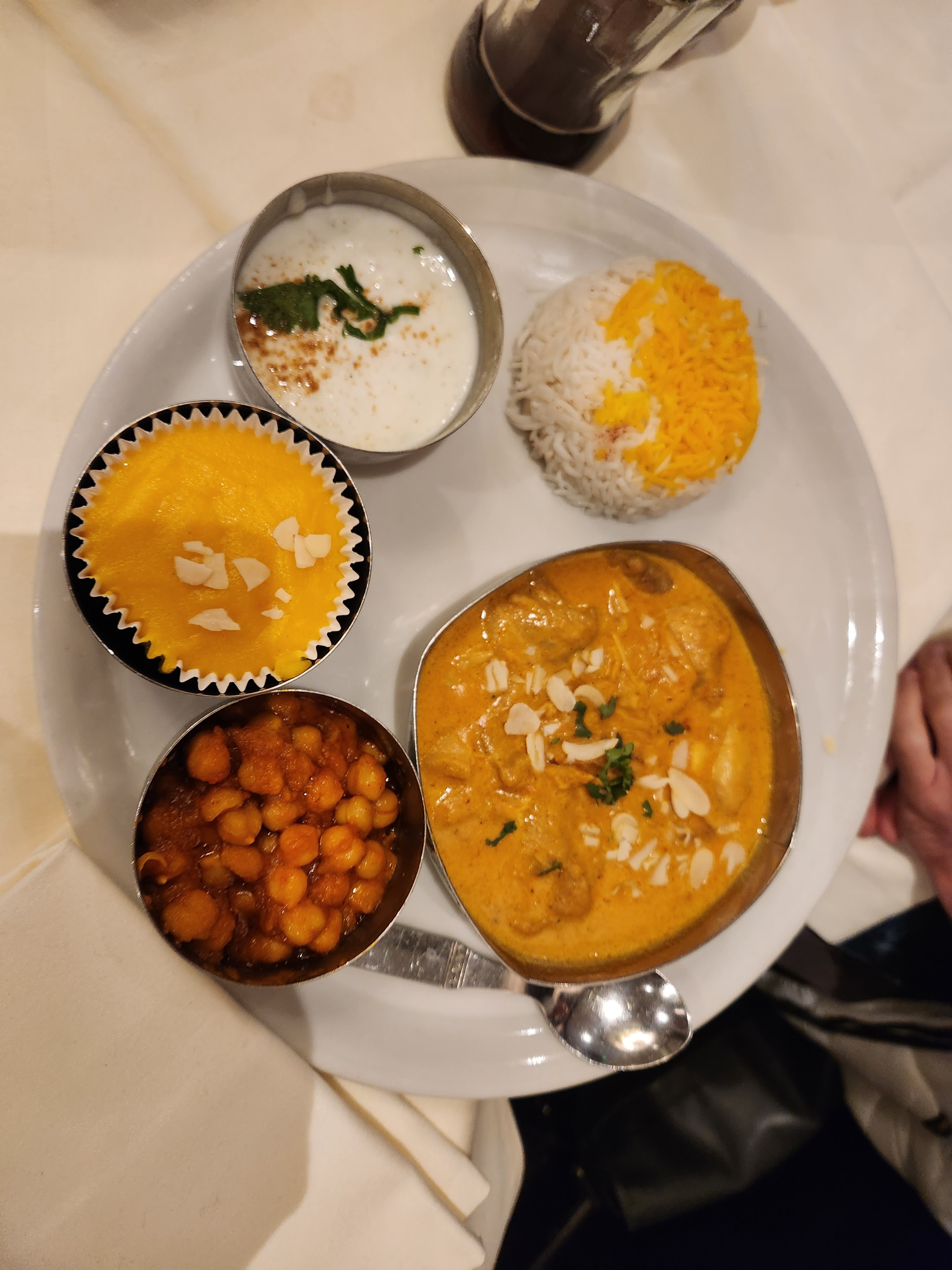 Ashiana est rapidement devenue l’une de mes préférées locales. J'ai tellement apprécié le dîner que j'y suis retourné 2 jours plus tard pour le déjeuner. Pour le dîner, j'ai essayé le poulet korma et le poulet au beurre avec du riz au safran. Pour le déjeuner, j'ai pris le déjeuner spécial poulet biryani, qui comprenait de la raita, un mélange de légumes et un accompagnement de fruits. La taille des portions du déjeuner était généreuse. Le pain naan était également bien préparé. J'ai terminé le déjeuner avec un délicieux lassi à la mangue. Le poulet au beurre était mon préféré, même si j'ai adoré chaque plat. Les serveurs sont vraiment sympathiques. Je reviendrai certainement et emmènerai les visiteurs ici.