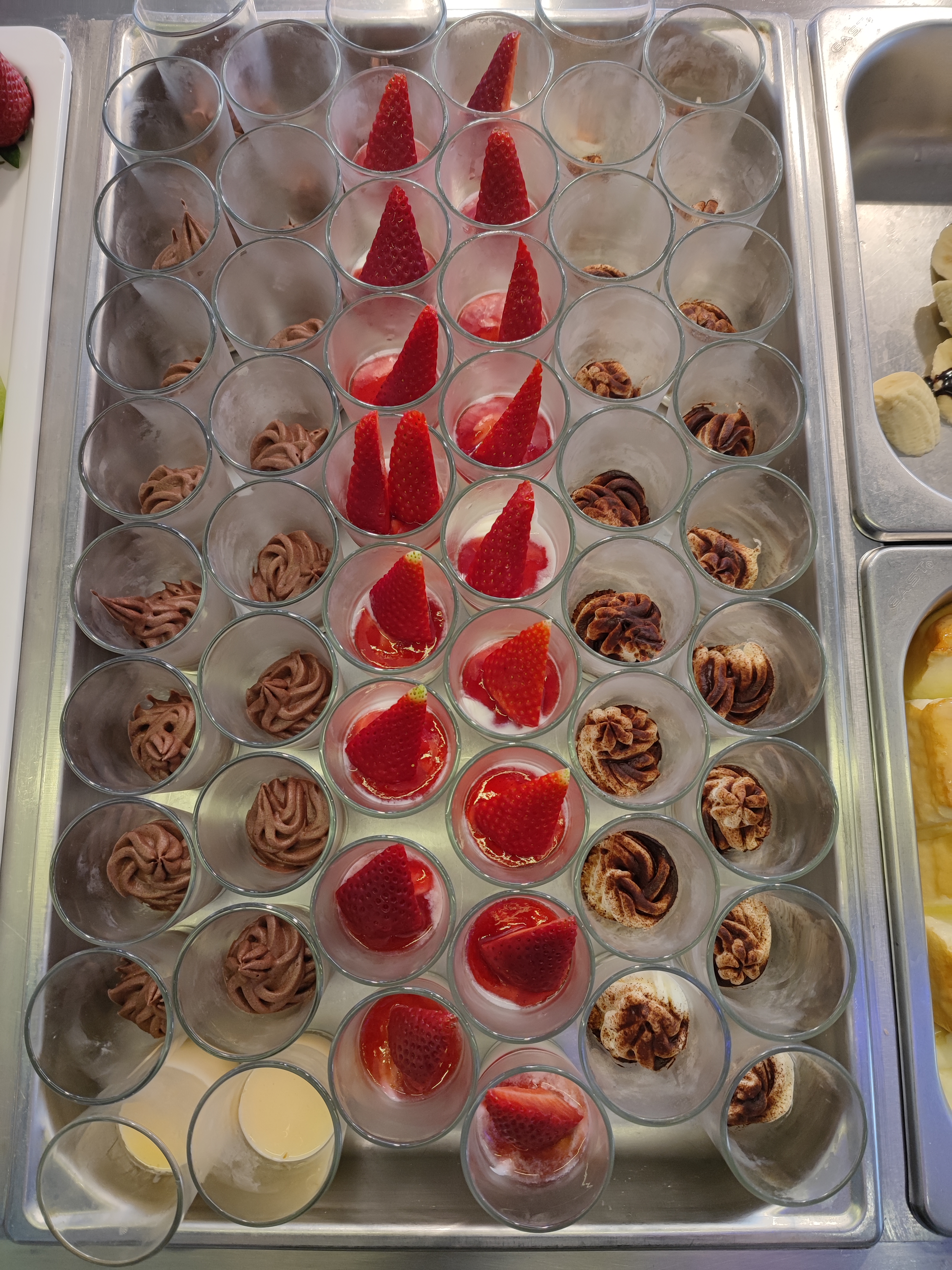 La nourriture était froide, monotone, grand choix de desserts