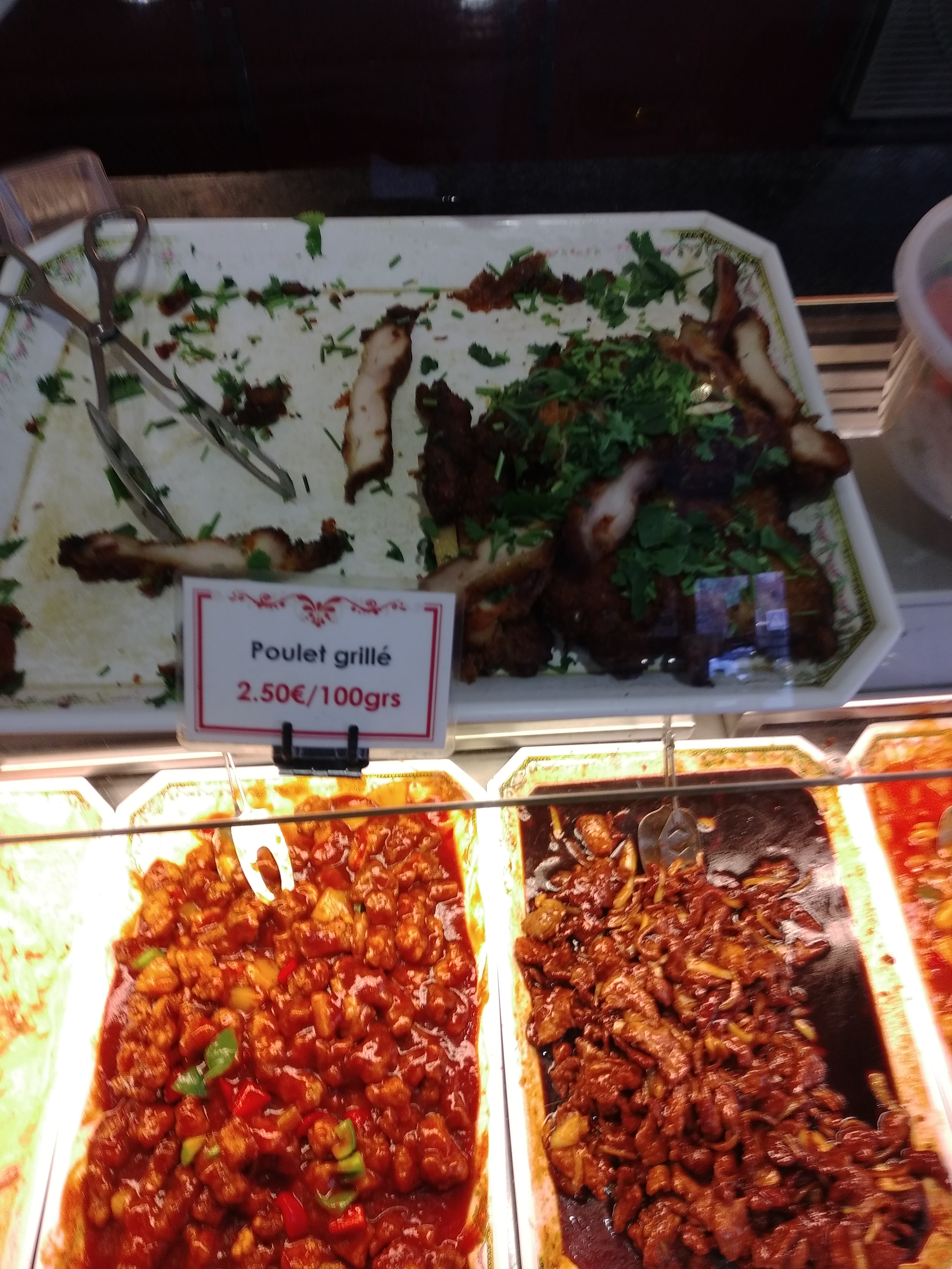 attention ! ! ! ça pèse très lourd dans la balance et les prix flambent.... la moindre portion est enrobée d’une colle de farine de riz gluante imbibée d’eau salée cela alourdi tout ce que vous achetez ici, les aliments enrobés de cette astuce sont en vitrine réfrigérée de cette façon l’enrobage colle à la viande, au poisson, ...l’objectif est atteint pour le patron : cette petite combine lui fait gagner ainsi de l’argent 1€ ou 2€ en supplément à chaque fois !!! sur les milliers de petites portions chaque jour toute l’année .... votre portefeuille est vidé petit-à-petit sans que vous vous en rendiez compte