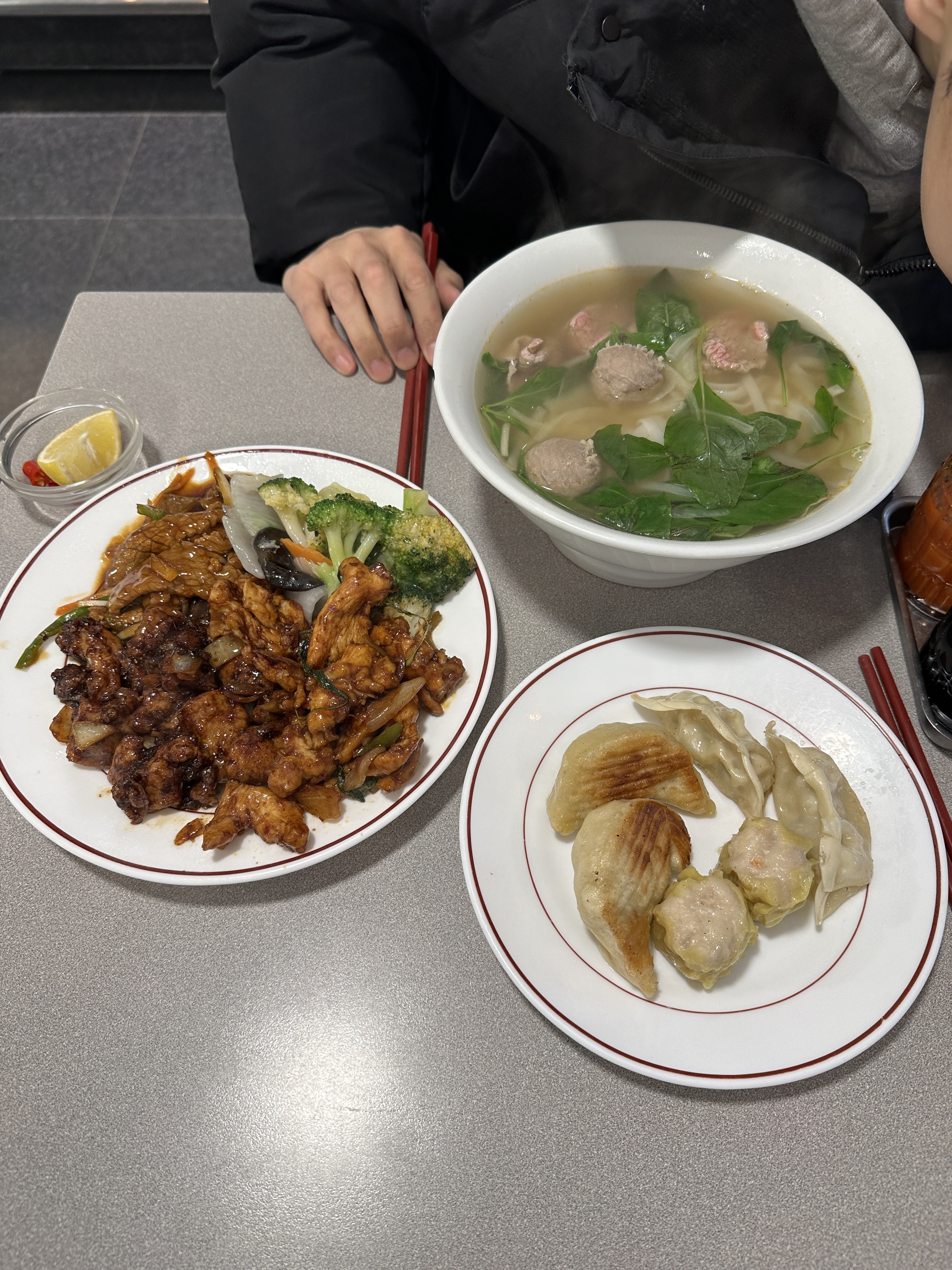 Service peu agréable. Le serveur nous dit qu'il ferme dans une minute mais garde un client a côté. On voit bien que c'est pas fermé pour tout le monde. Nourriture de piètre qualité. Du réchauffé de chez Tang et en plus cher. En un mot passez votre chemin. Celui d'en face est bien meilleur et moins cher