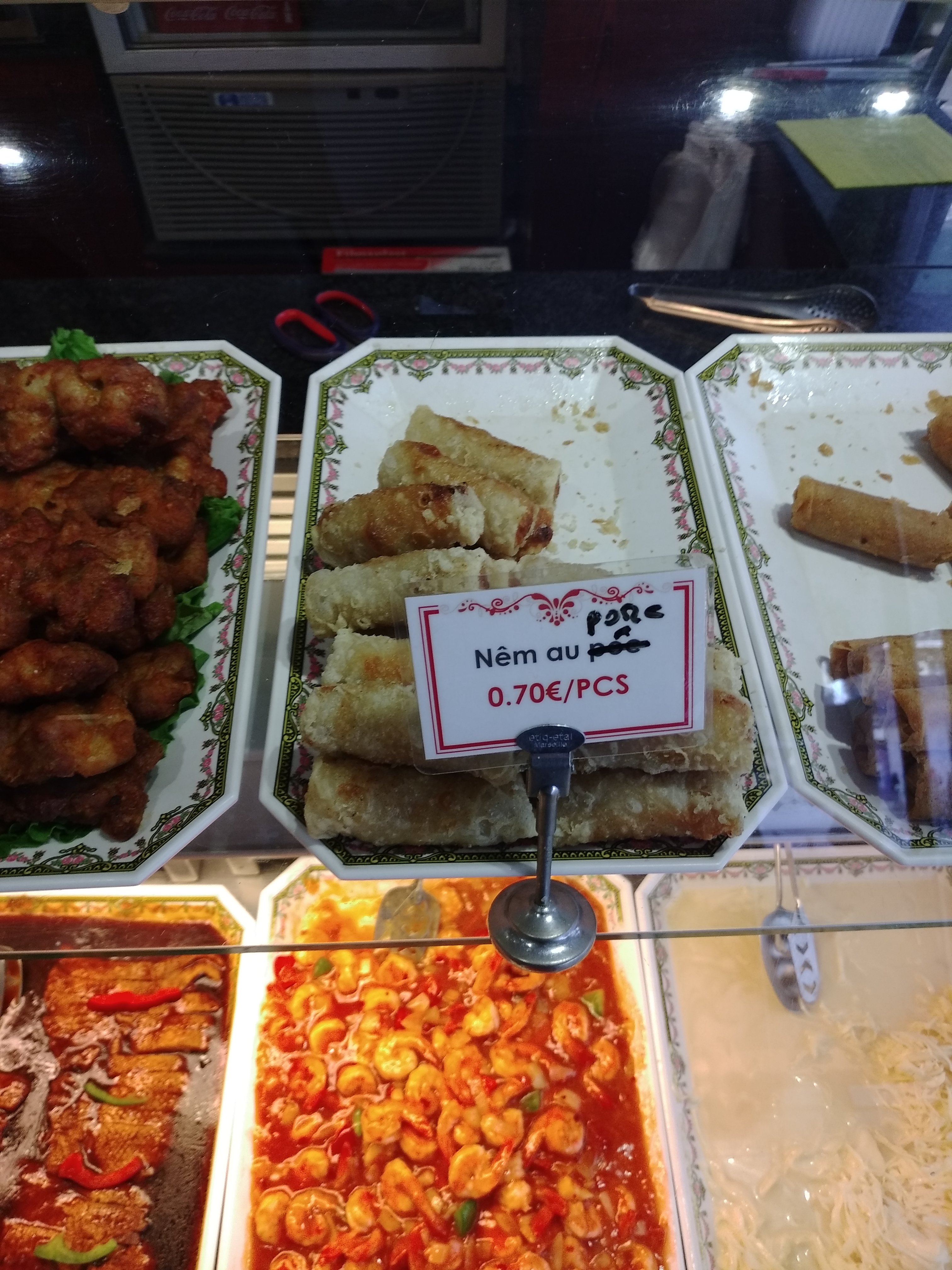Je suis passée devant ce traiteur asiatique en me promenant dans ce coin de mon quartier. J’ai vu qu’il y avait du monde donc je suis rentrée. J’ai choisi le menu à 9€. Trois nems au légumes. Riz nature et bœuf à la sauce piquante Coca zéro Les nems n’étaient pas bons. La pâte était dure et je n’ai presque pas senti les légumes. J’aurais dû choisir les vapeurs. Et il y avait beaucoup (trop) de riz comparé à la quantité de bœuf. Pas de sauce donc un peu sec. Je suis globalement un déçue.