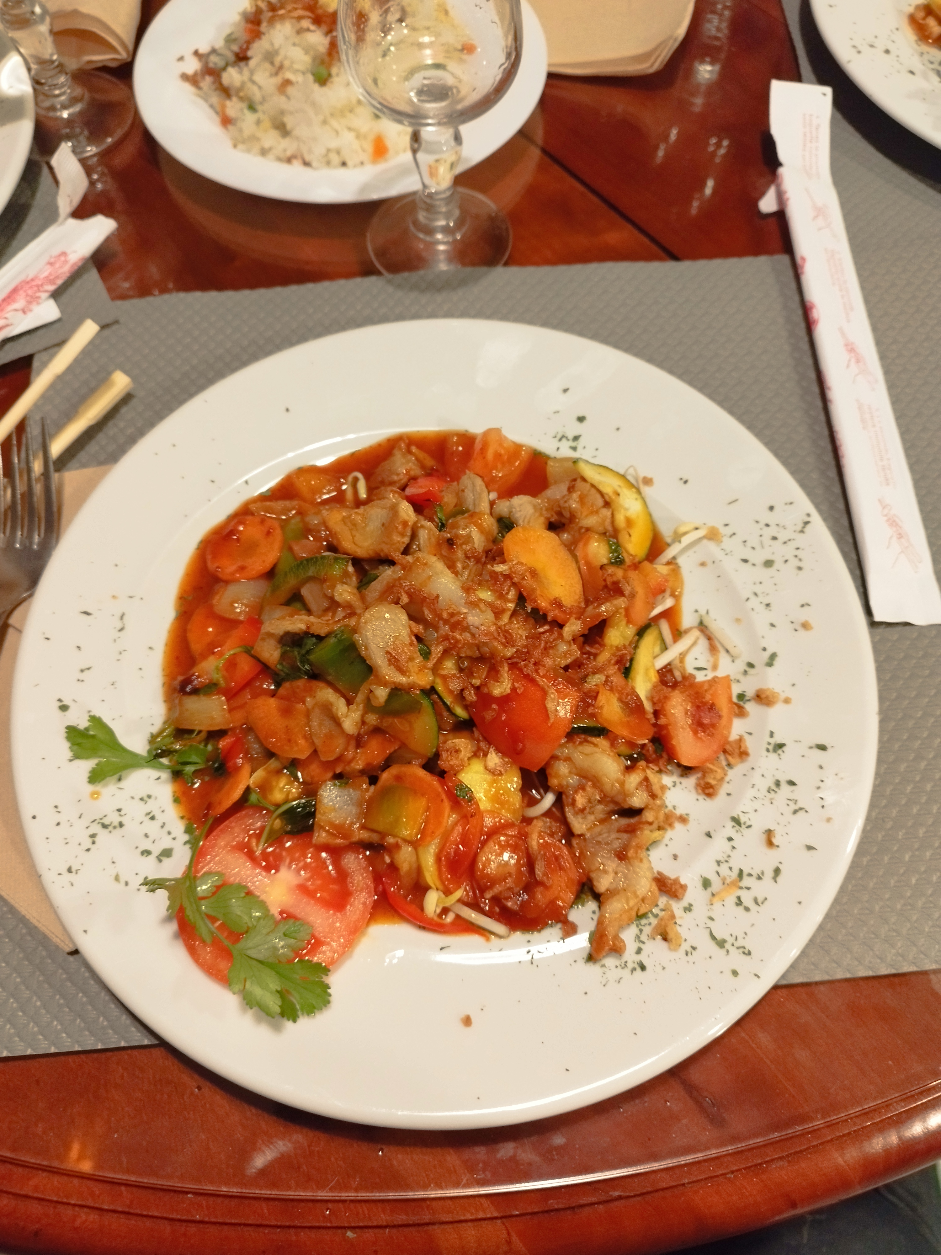 Repas bon et copieux. J'ai pris les calamars sauce piquante et je me suis régalé. Prix raisonnables. Bref je vous recommande.