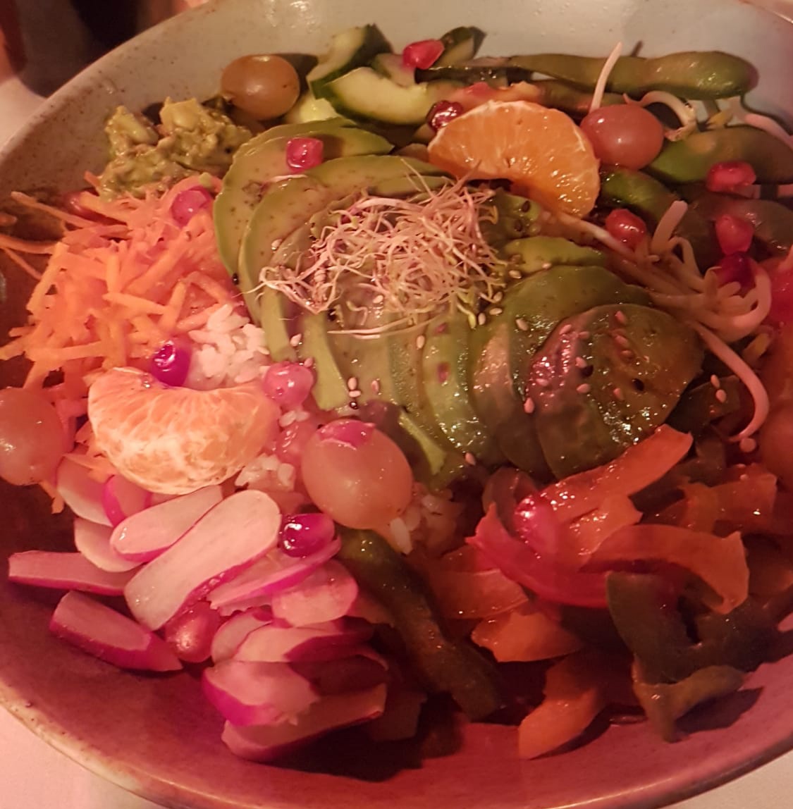C'est la seconde fois que je retourne dans ce restaurant et la qualité des plats est toujours au rendez vous ! Les produits sont d'excellente qualité et le service est plutôt rapide. Le plat en photo est le budha bowl et c'était très bon !! J'ai pris en dessert la brioche perdue au caramel et c'était un delice ! Ne vous laisser pas surprendre par l'agressivité des serveuses, la qualité des plats prendra le dessus :)