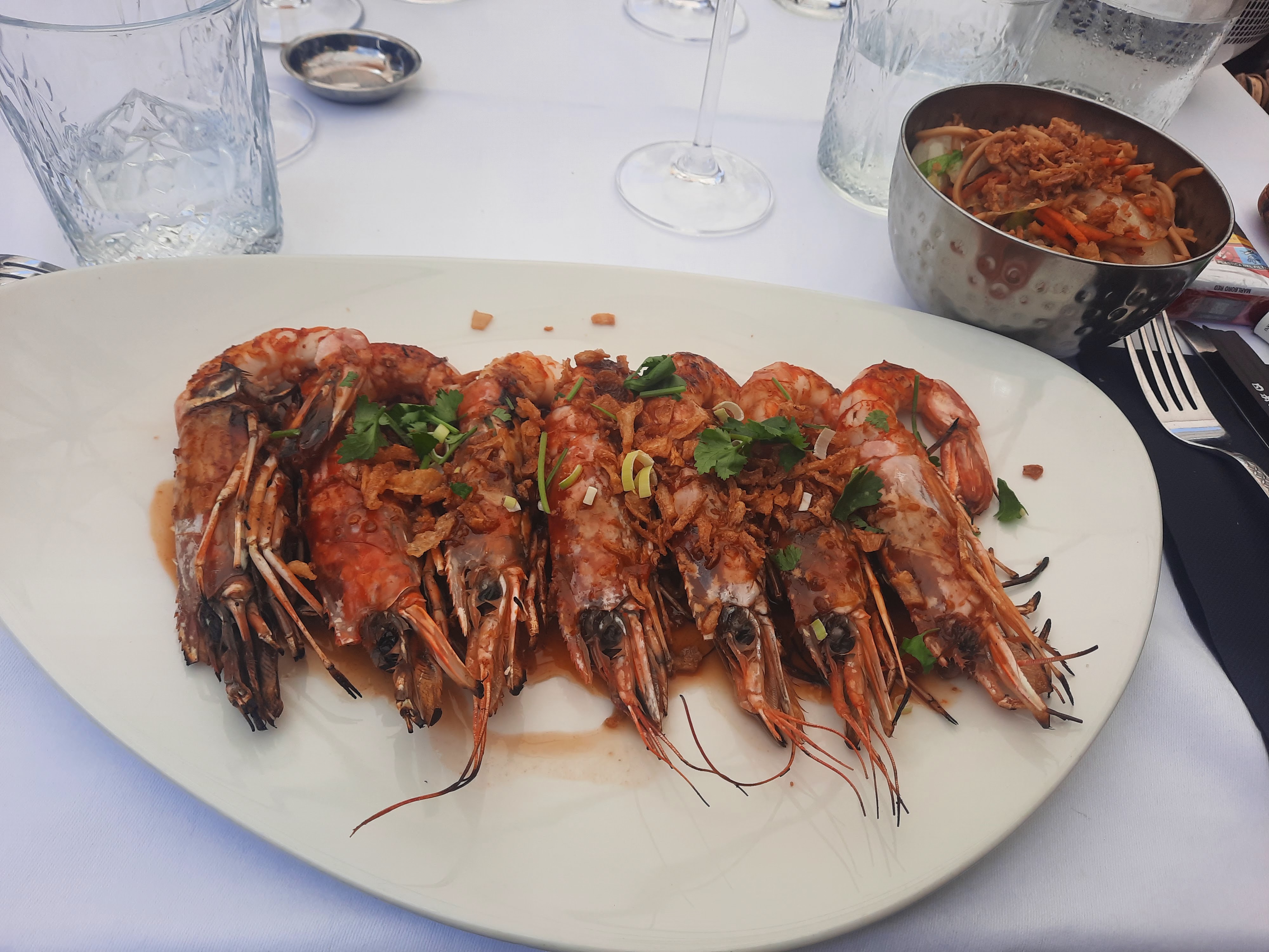 Bonsoir, j'ai commandé des gambas au curry.. j'ai reçu une assiette immense pour 3 petites gambas je trouve que c'est une moquerie au vu du prix.. l'ambiance est pas terrible, la femme qui est gérante est désagréable ! Les serveur souffle devant nous ... Franchement à éviter, si vous voulez un restaurent asiatique il y a beaucoup mieux. Le prix ne veut rien dire c'est un attrape touriste .