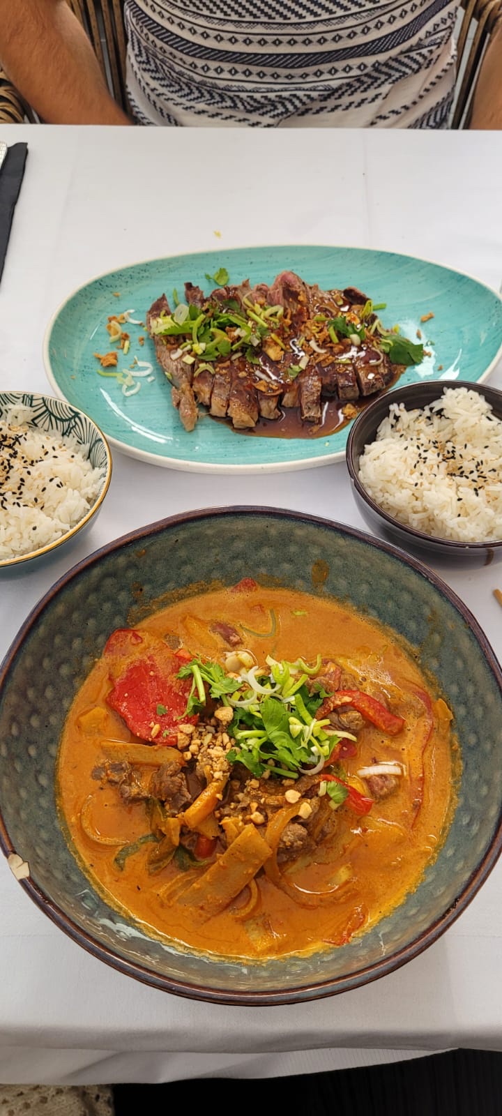 La nourriture est bonne mais le service est horrible. De plus, qui a vécu en Asie du Sud-Est pendant des années, comme moi, sait que CHAQUE plat est accompagné de riz (sauf ceux qui contiennent déjà des nouilles à l'intérieur). Nous avons demandé une tasse de riz après avoir reçu cet Asado coûteux sans autre chose que le morceau de viande, et ils ne nous ont jamais apporté le riz, même si nous l'avons commandé 3 fois. La même chose s'est produite avec une caraffe d'eau. Nous sommes repartis assez déçus. C'est dommage car la nourriture était plutôt bonne.