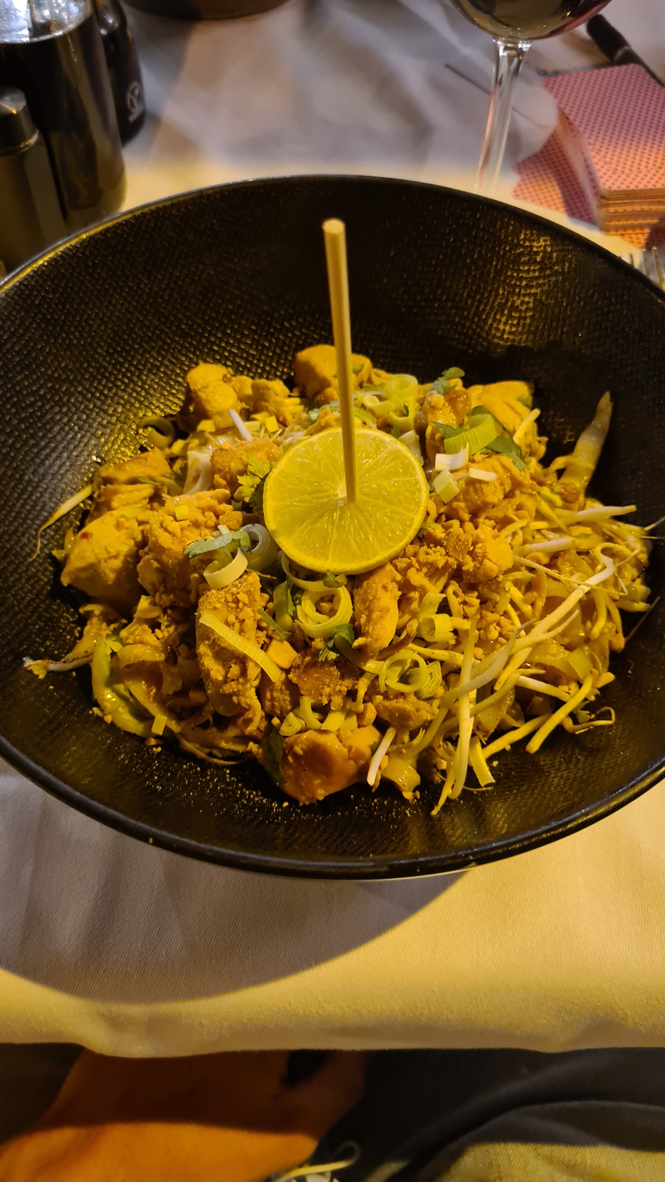 Ce fut lamentable du début à la fin. J’ai commandé des légumes curry vert. On m’a servi les légumes d’une salade style César Salade chauds ramollis baignant dans une sauce coco qui arrachait sans aucun goût de curry vert. Une autre convive à eu droit à des tagliatelles de riz bouillies plongées dans la même sauce coco insipide ! Quant au Pad Thai poulet à faire pâlir de honte n’importe quel restaurateur thaïlandais digne de ce nom. Service et discussion avec le responsable surréaliste dans le dédain du client.
