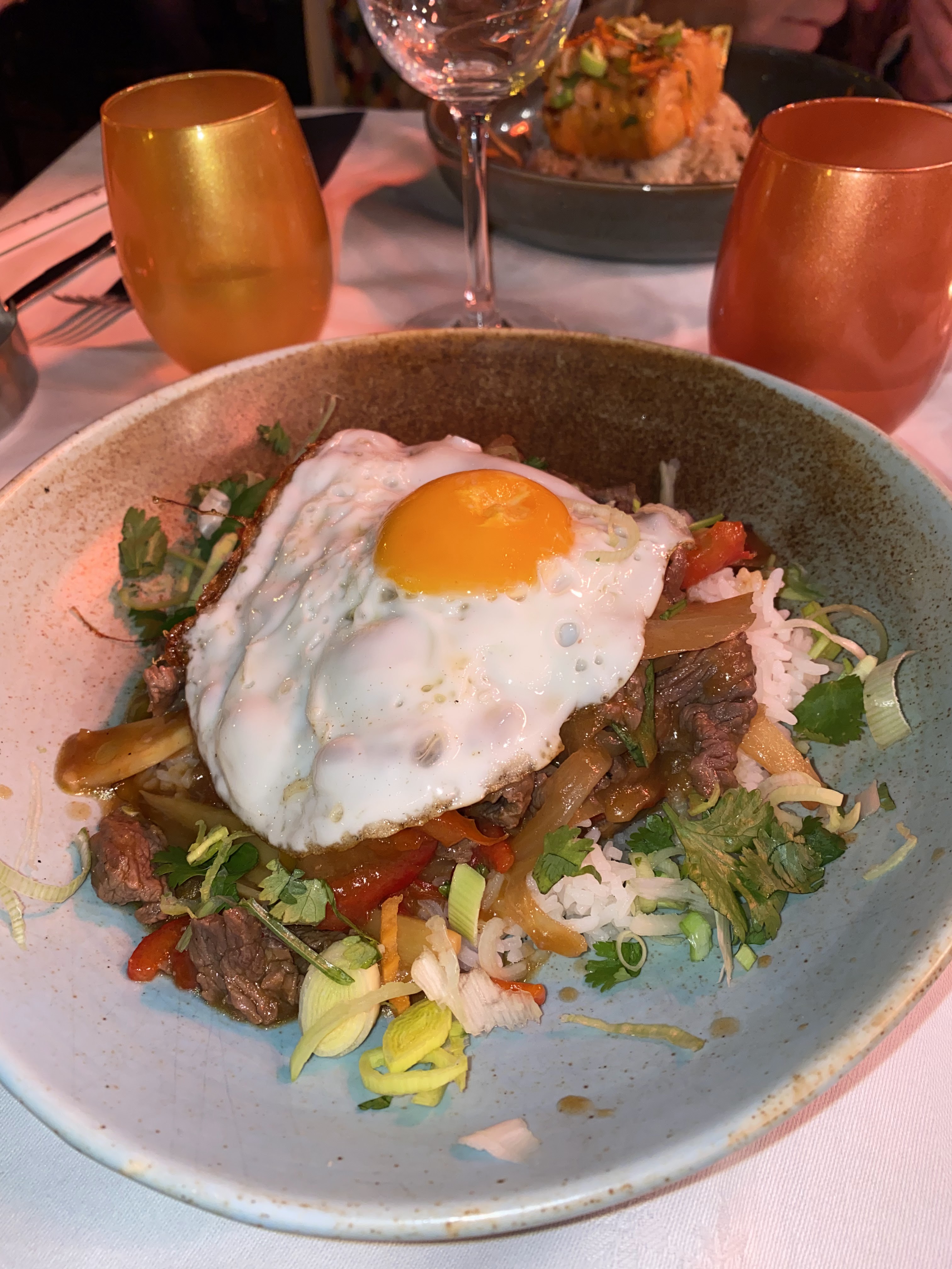 Bel endroit où passer un bon moment entre amis. Préférer la terrasse si le temps le permet. Accueil et personnels chaleureux. Pour ce qui de la cuisine, les plats sont délicieux mais dans une version édulcorée de la gastronomie asiatique. Ils manquent de personnalités, peu épicés. Ils sont réalisés pour plaire au plus grand monde mais pas les connaisseurs. Prix corrects mais attention à celui des vins qui s'envolent.