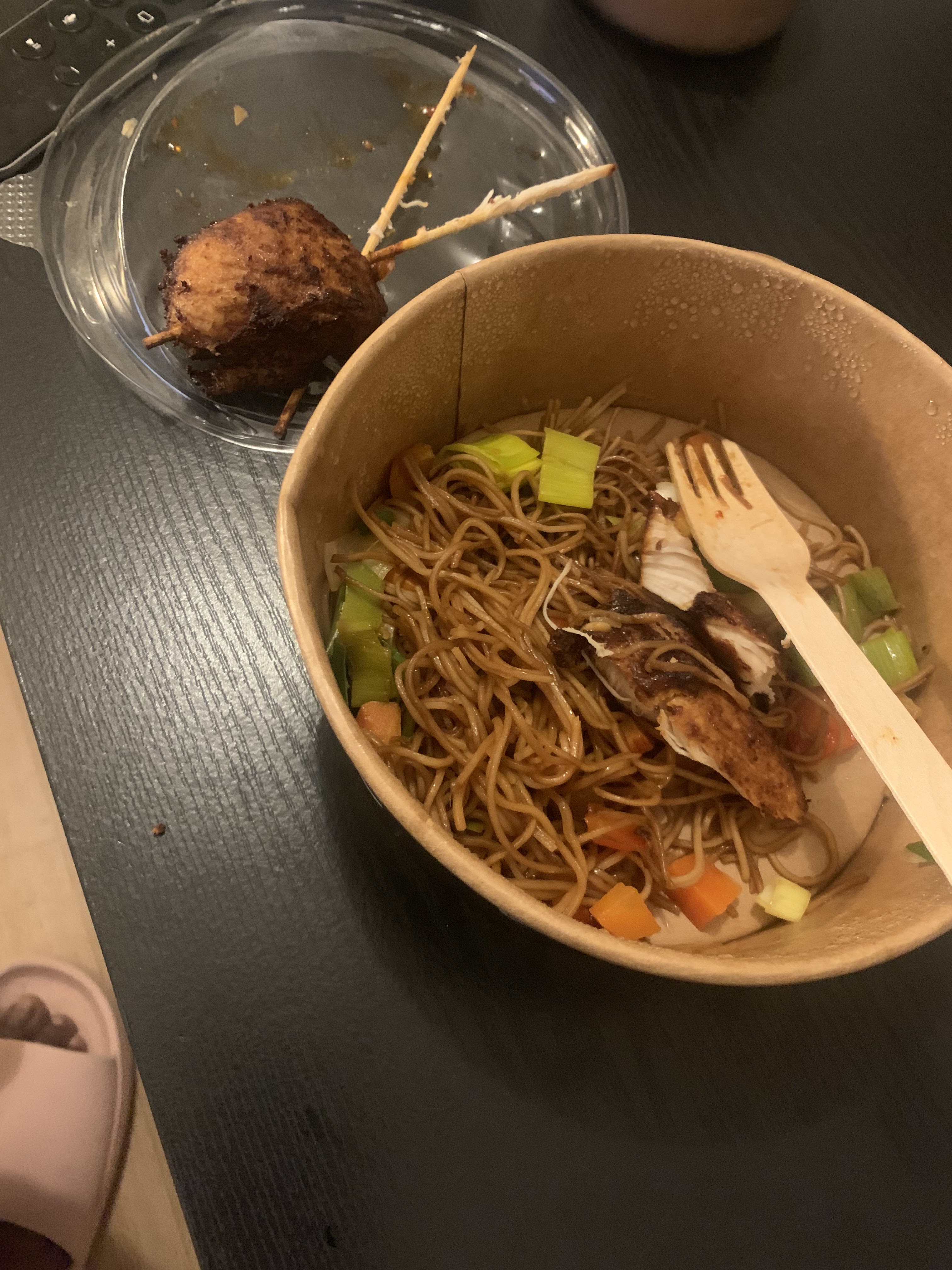 Commandé le 26 septembre des nouilles avec des brochettes de poulets au saté, les brochettes sont sèches mais mangeable, en revanche les nouilles mon dieu... La sauce sucré salé est vraiment pas utile, les nouilles ont aucun goût et le légume présent qui, je pense, est du poireau est déplorable, à peine cuit voir cru, des morceaux énormes à croire que le poireau était entièrement dans ma petite boîte. Mettez un peu de sauce soja et du vrais soja en légume et vous allez voir que vos nouilles auront du goûts, on voit que vos cuistots ne sont pas asiatique...