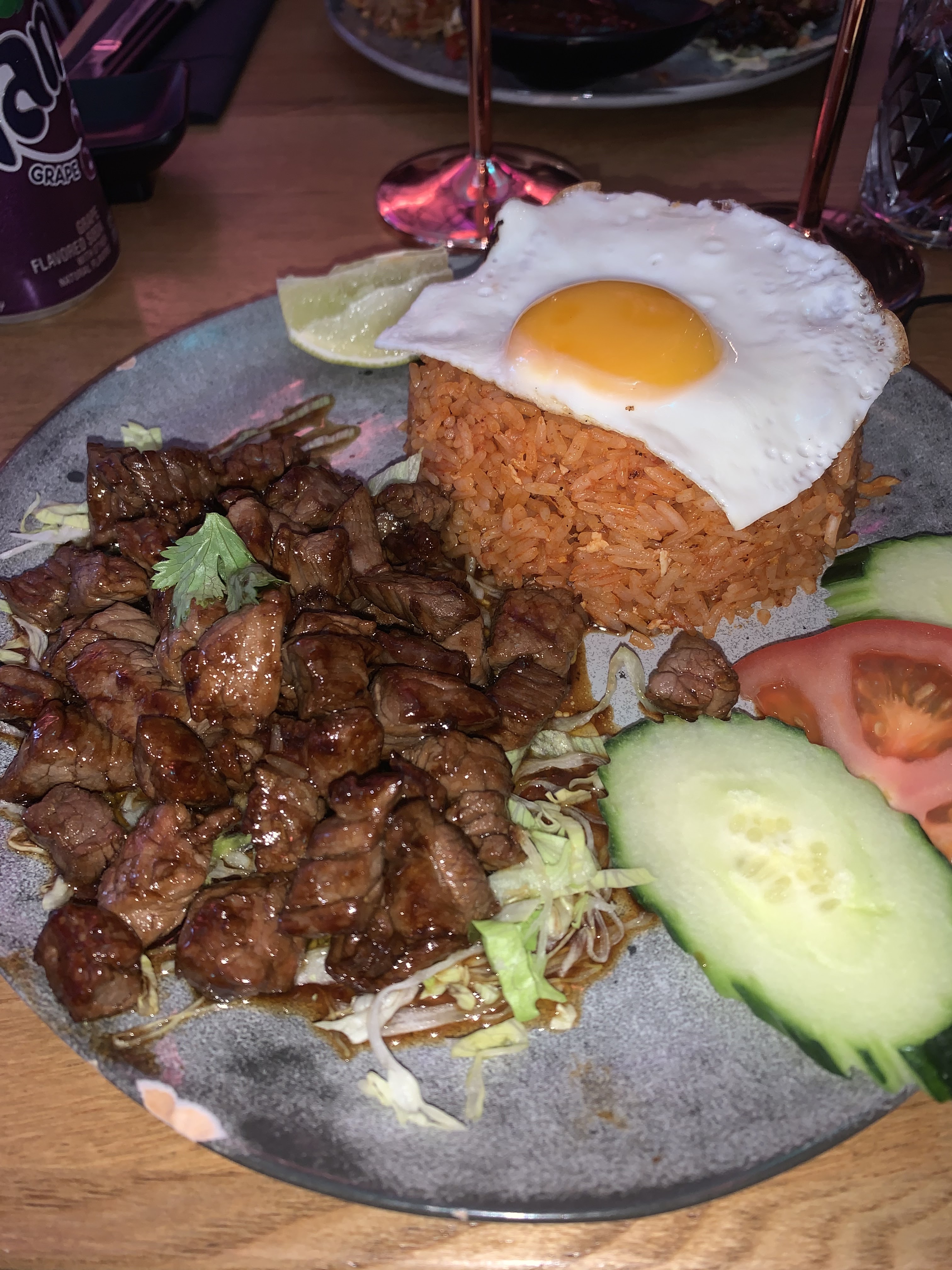Franchement ambience, décoration rien à dire c’est joli et agréable mais les plats ne sont pas incroyable. Les nems sont bons par contre. J’ai pris un crousty poulet avec riz blanc, un plat basique en soit mais il manque quelque chose avec le riz parce que c’est un peu sec. Les serveurs/serveuses sont sympa et nous ont laissés rester plus longtemps pour l’anniversaire d’une amie afin de s’excuser pour l’accueil et le placement de tables.