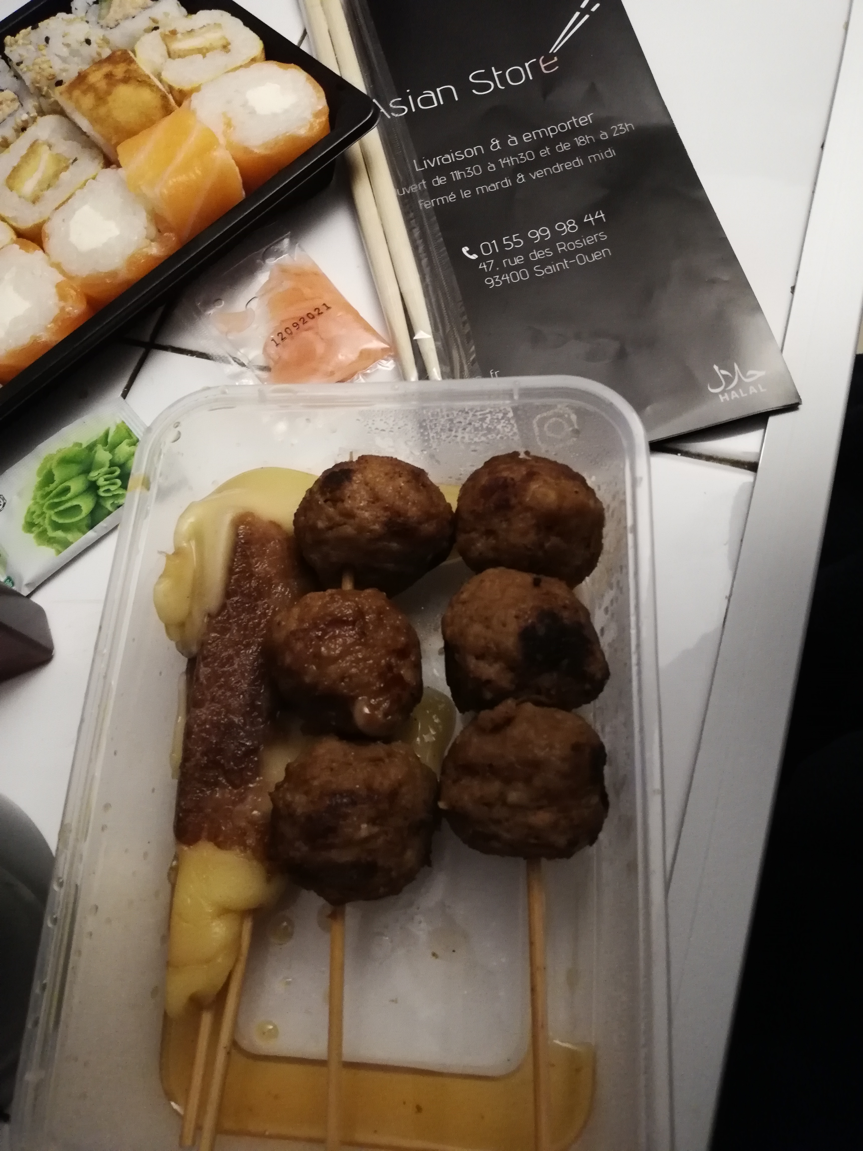 Pour ce qui est des sushi c était plutot bon mais j'ai aussi commandé des brochettes poulet bœuf et bœuf fromage et le goût de toutes les brochettes n'était vraiment pas bon malheureusement et c'est une fana des brochettes qui témoigne