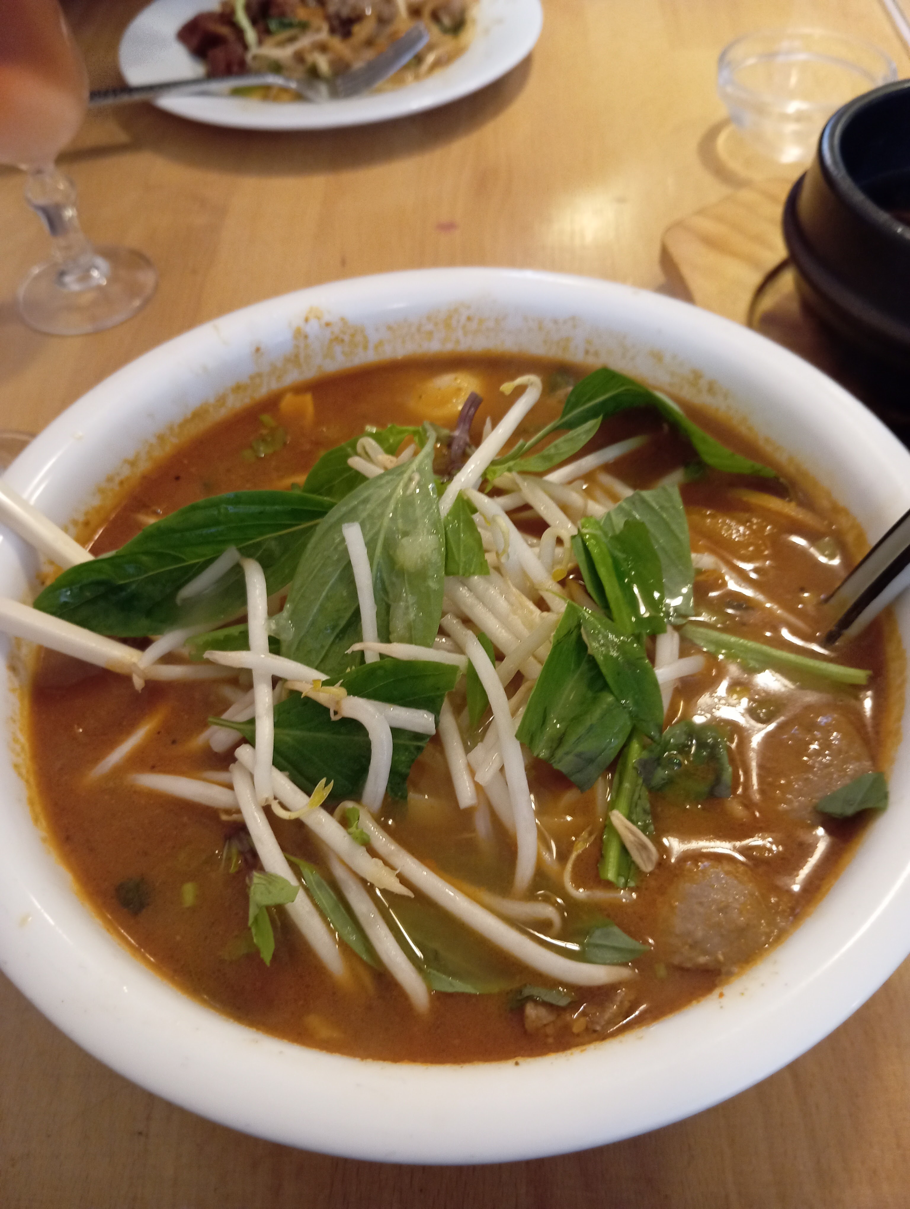 Sympa petit restaurant , rapide, aimable, je n'ai goûté que la soupe saté bœuf et boulettes de viande. C était bon.
