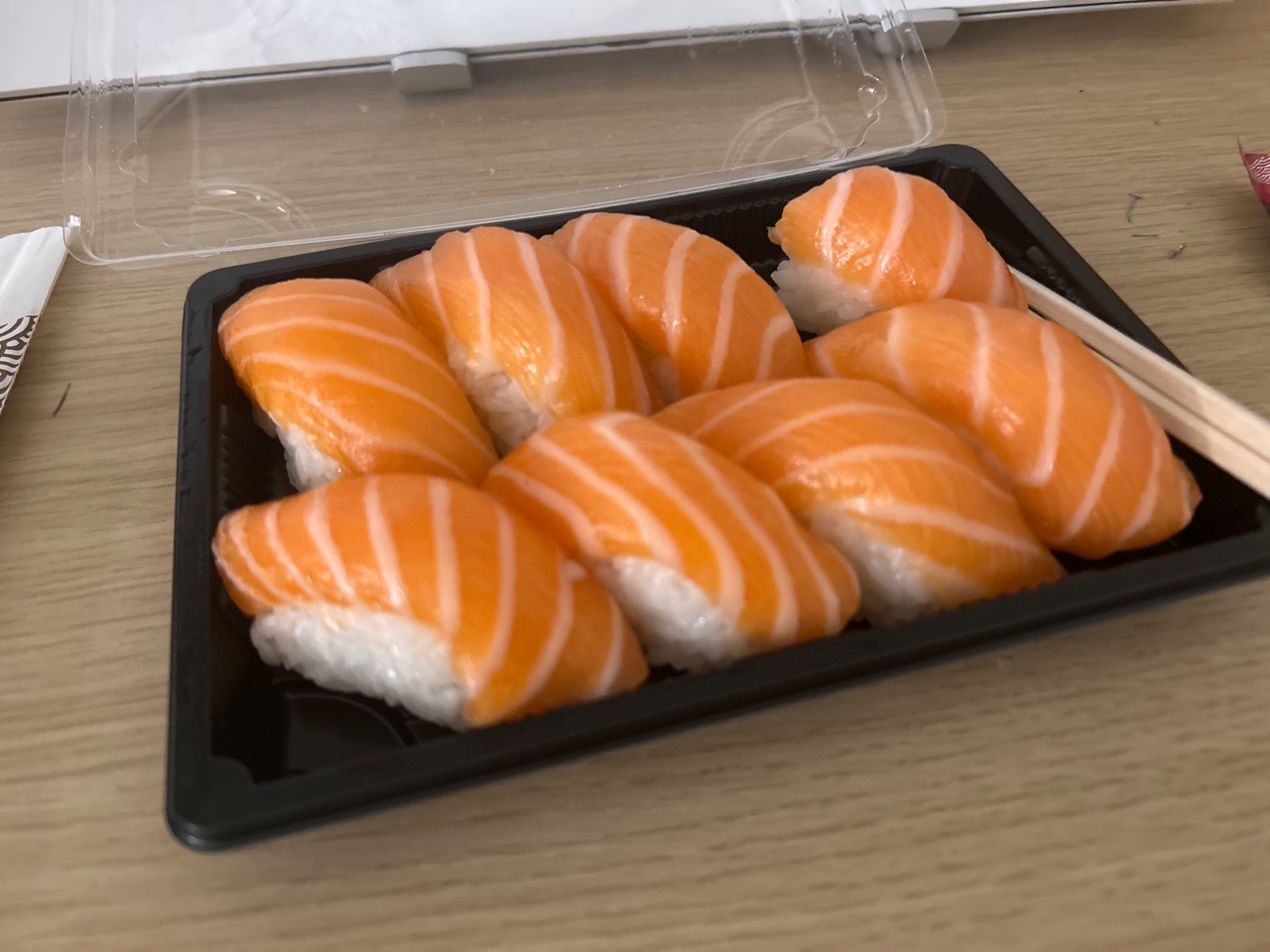 Je l'ai commandé via Uber Eats, mais les sushis au saumon avaient vraiment mauvais goût.. mon argent.. que dois-je dire du goût ? Le riz avait un goût de médicament. Il avait le goût de rouge à lèvres. Je l'ai jeté après avoir pris une bouchée.. là il y avait trop de riz. Ce n'est pas bon, c'est le pire