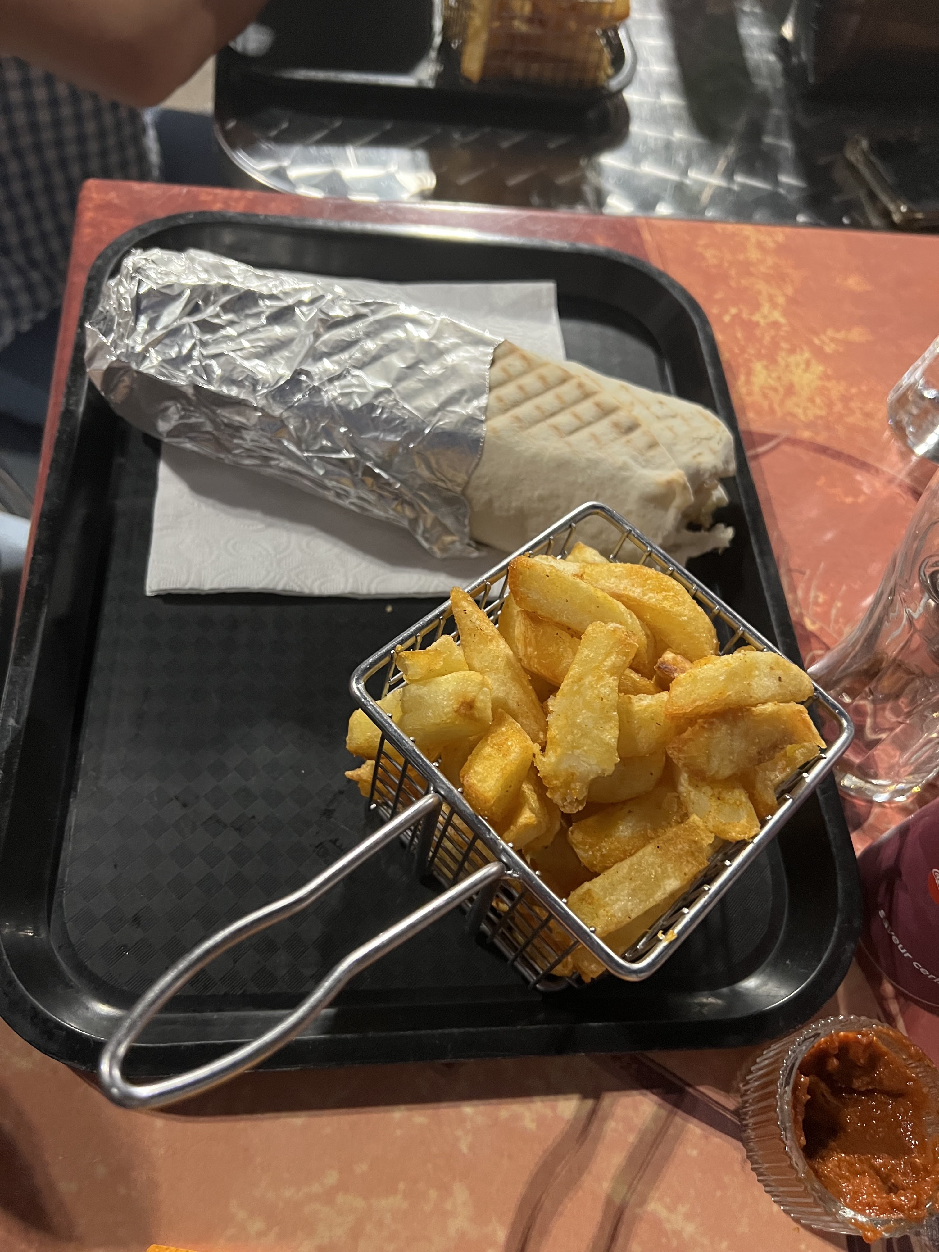 C’était très bon sur ça rien à redire, par contre, 16€ pour un yufka une petite portion de frite et une boisson à emporter j’ai comme l’impression de mettre fait avoir sur le prix… dommage Je m’en suis donc sorti avec 32€ pour deux yufka deux petite frite et deux boisson je ne comprend toujours pas d’où vient ce prix