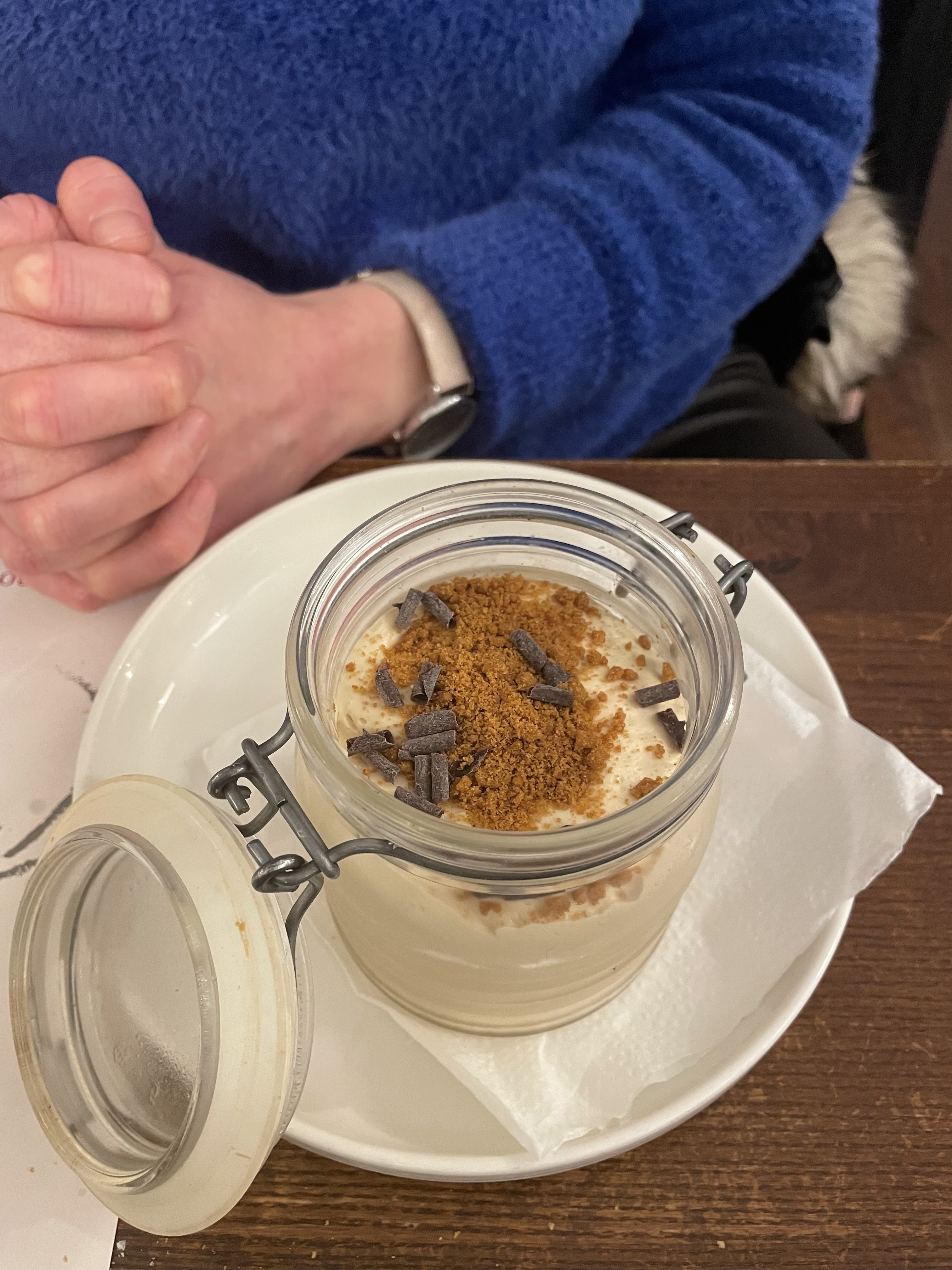 Nous avons diner à l interieur, un peu trop pret du balais des serveurs qui passent et repassent d un pas rapide, un peu d attente pour le plat phare, de ce fait nous n avons pas eu la patience de tester la carte des desserts, mais pour autant nous y retounerons!!