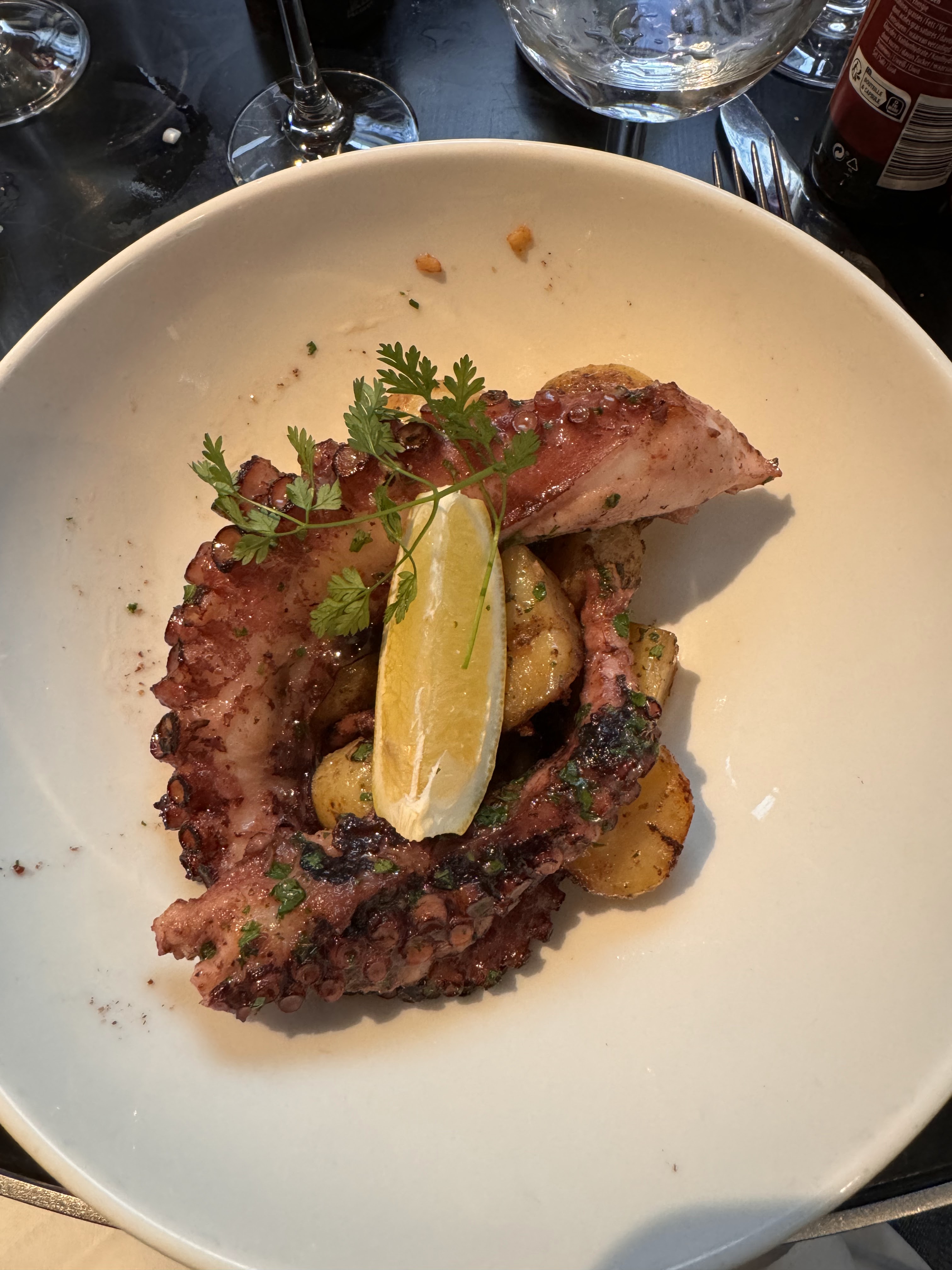 Bonne découverte pour moi, le repas était bon, le poulpe très bien cuit. Et le moelleux au chocolat était très bien aussi. Le service était agréable, le restaurant n'était pas brillant. La déco est jolie aussi.
