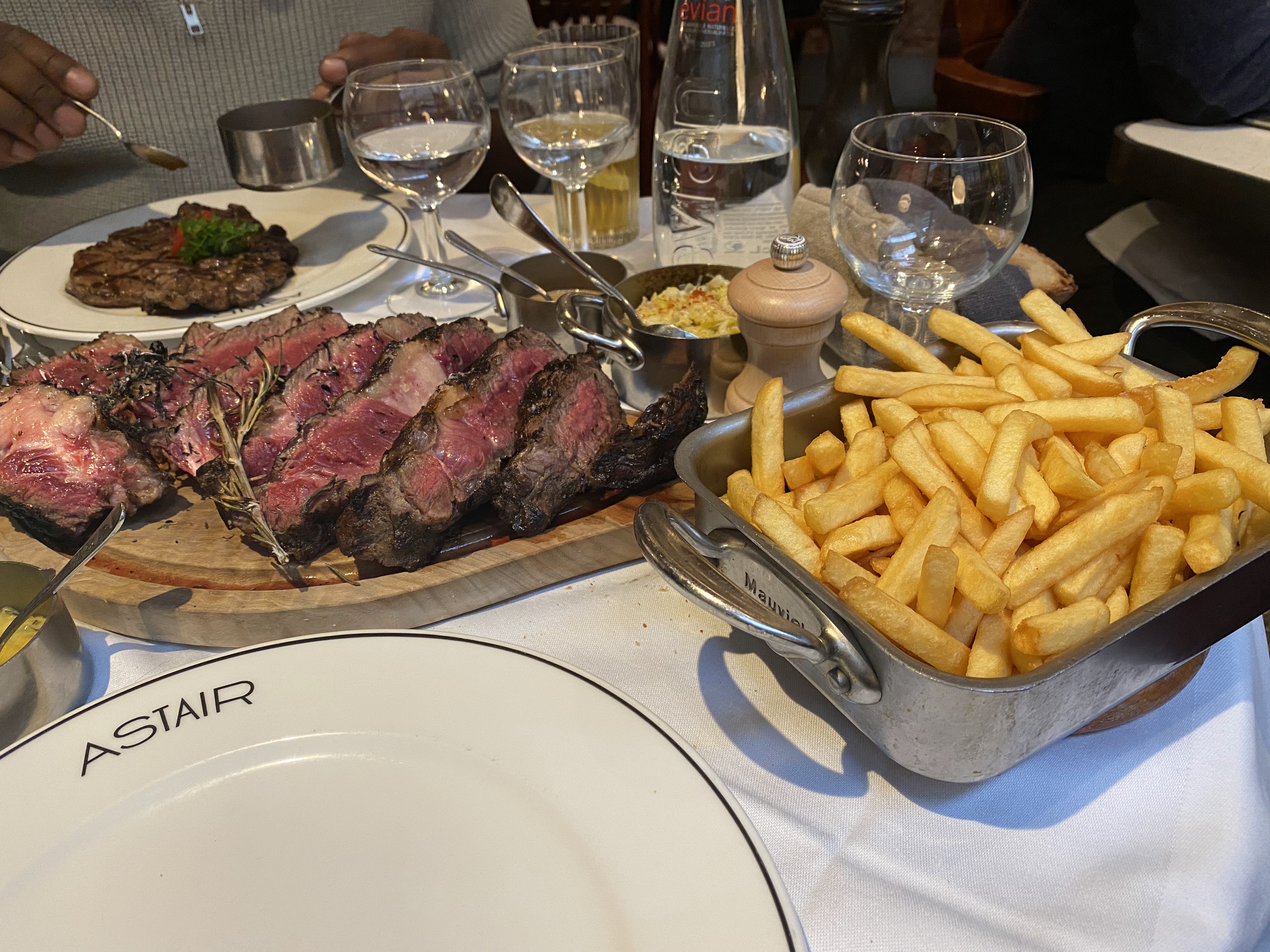 La côte de bœuf est un bijoux, elle me rappelle les bons morceaux de viande d'Argentine 🇦🇷. Le service est agréable et le tout bien décoré. Merci Astair