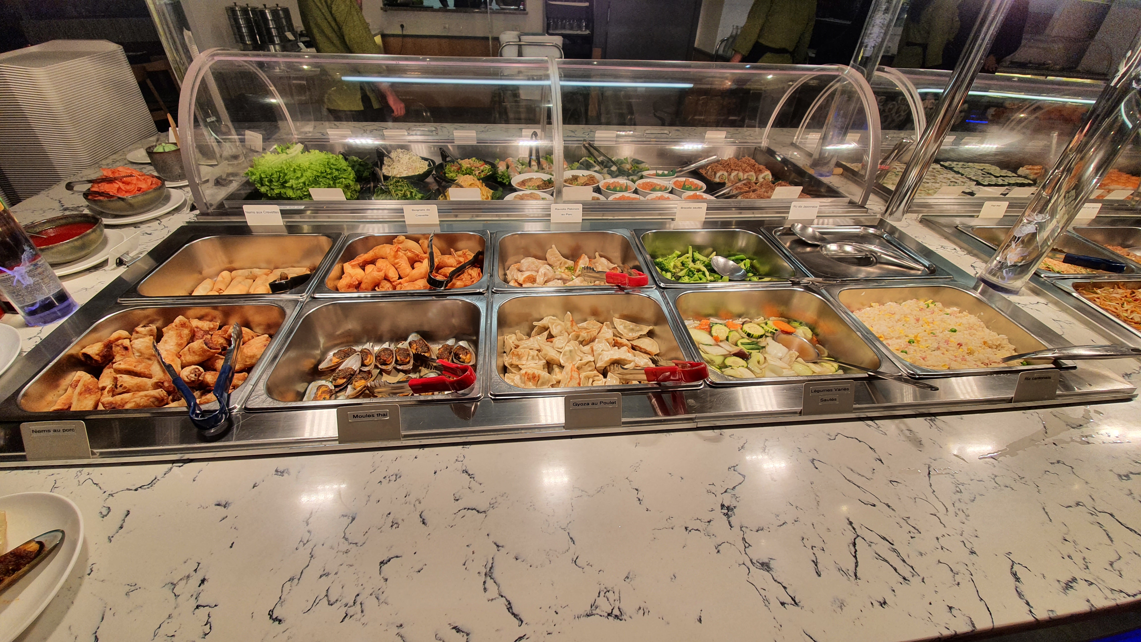 Je viens de découvrir ce restaurant grâce a des amis. Nous y sommes allés entre amis avec nos enfants , Le service est accueillant, le personnel au petit soin même un vendredi soir ! Le buffet n’est peut être aussi grand que certains buffets à volonté du secteur mais il y a néanmoins du choix et c’est très bon . Du fait maison, on y trouve notamment salade thaï de bœuf cru, des makis, sushis, gros, canard laquet, riz cantonais , brochettes bœuf fromage, des desserts originaux comme une pana cotta thé matcha menthe … J’y retournerais sans hésiter !