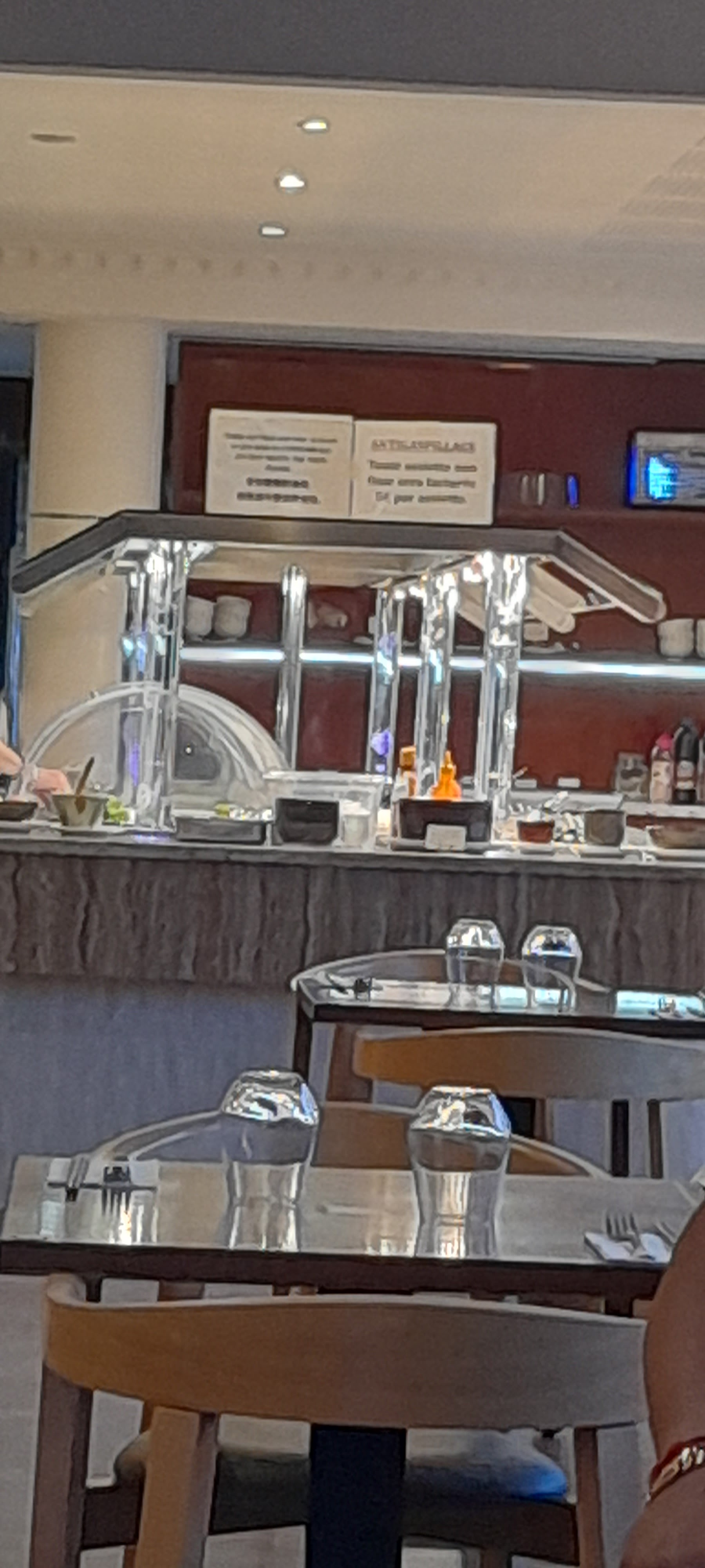 Je n'ai pas du tout aimé l'ambiance ni le repas. Très très très cher pour ce que c'est, vraiment peu de choix. 10 € en plus sur la note si par malheur vous laissez quelque chose dans une assiette. Ils surveillent tout ce que vous prenez. Il y a même noté ici et la une portion par personne alors que c'est censé être à volonté. Pour quelques sashimis, 5 euro supplémentaires. Je m'en suis sortie pour 29 € à moi seule alors que je n'ai pu presque rien mangé, presque tout étant à base de riz (24 € + 5 € de sashimis), j'ai dû finir une friture de ma fille et je n'y ai pris aucun plaisir, il y avait beaucoup trop d'huile. Elle a deux ans et n'a rien mangé. Le repas pour les bébés est normalement compté, j'ai dû négocier. Bref, j'ai vraiment regretté et je n'y retournerai pas.