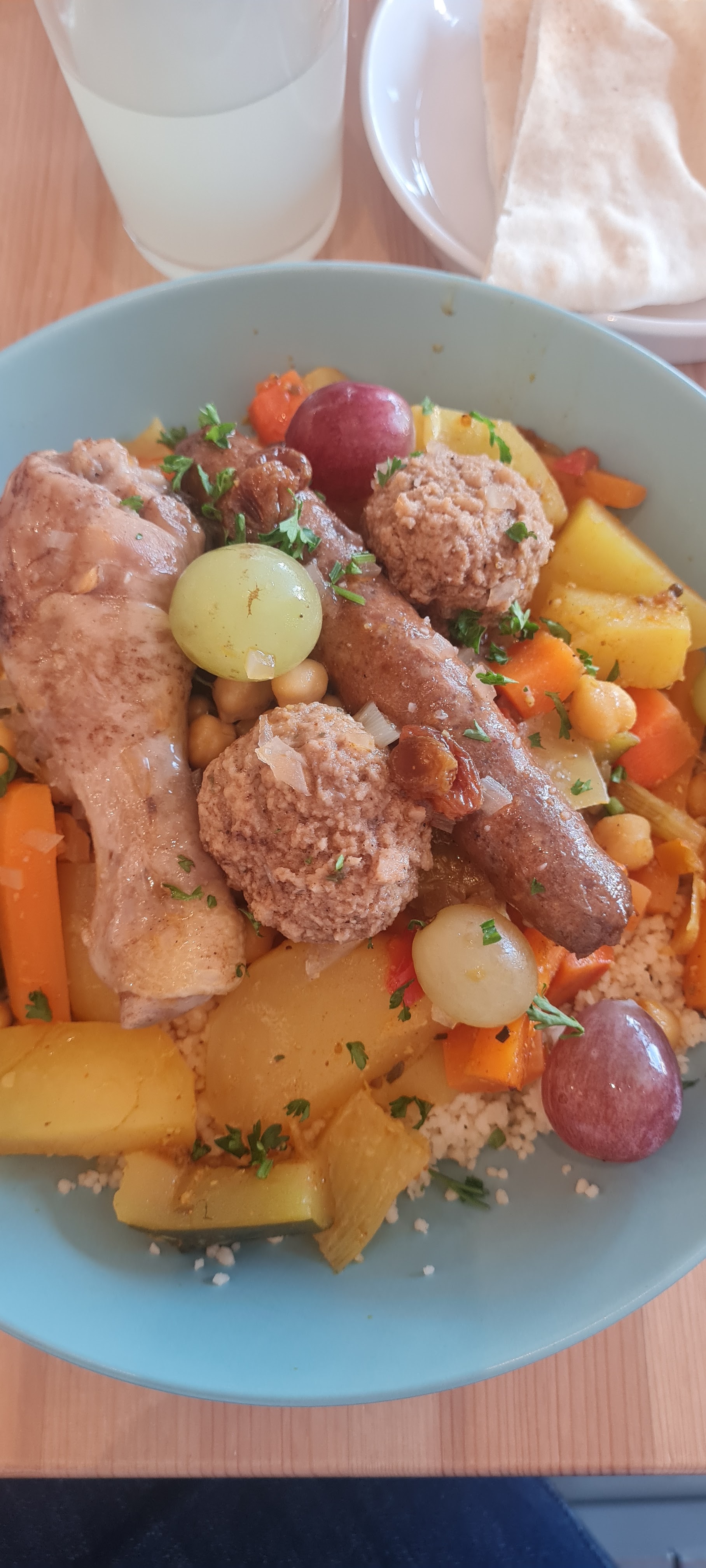 J’ai excellemment bien déjeuner dans ce restaurant et j’ai été très bien reçu ! Le jus de raisins/dates/pétales de rose avec le couscous royal est un combo gagnant ! 😋