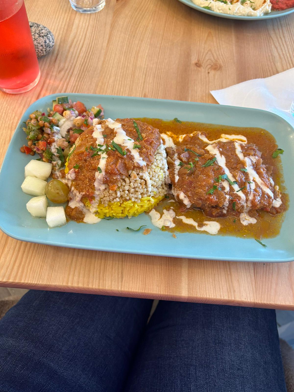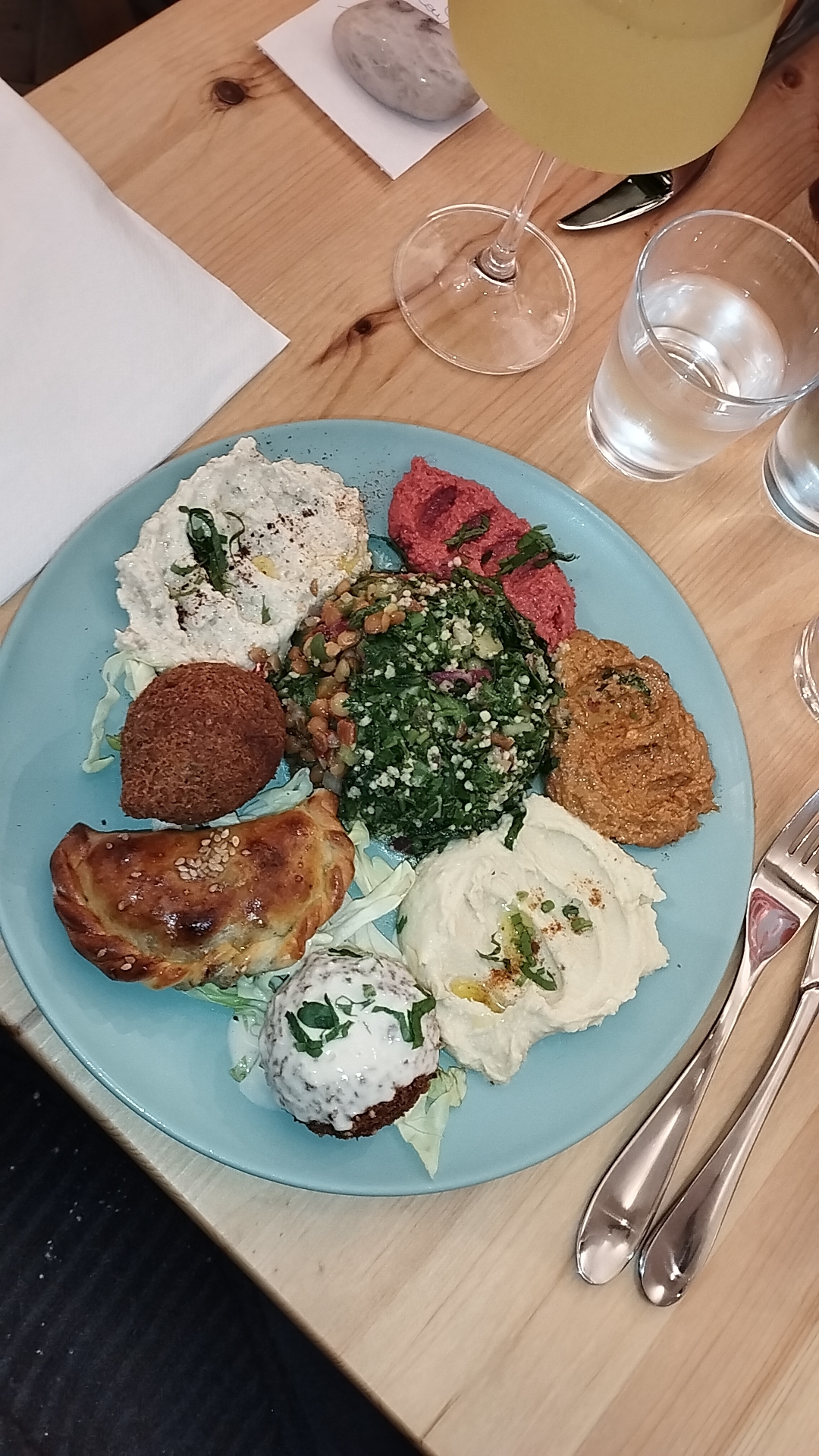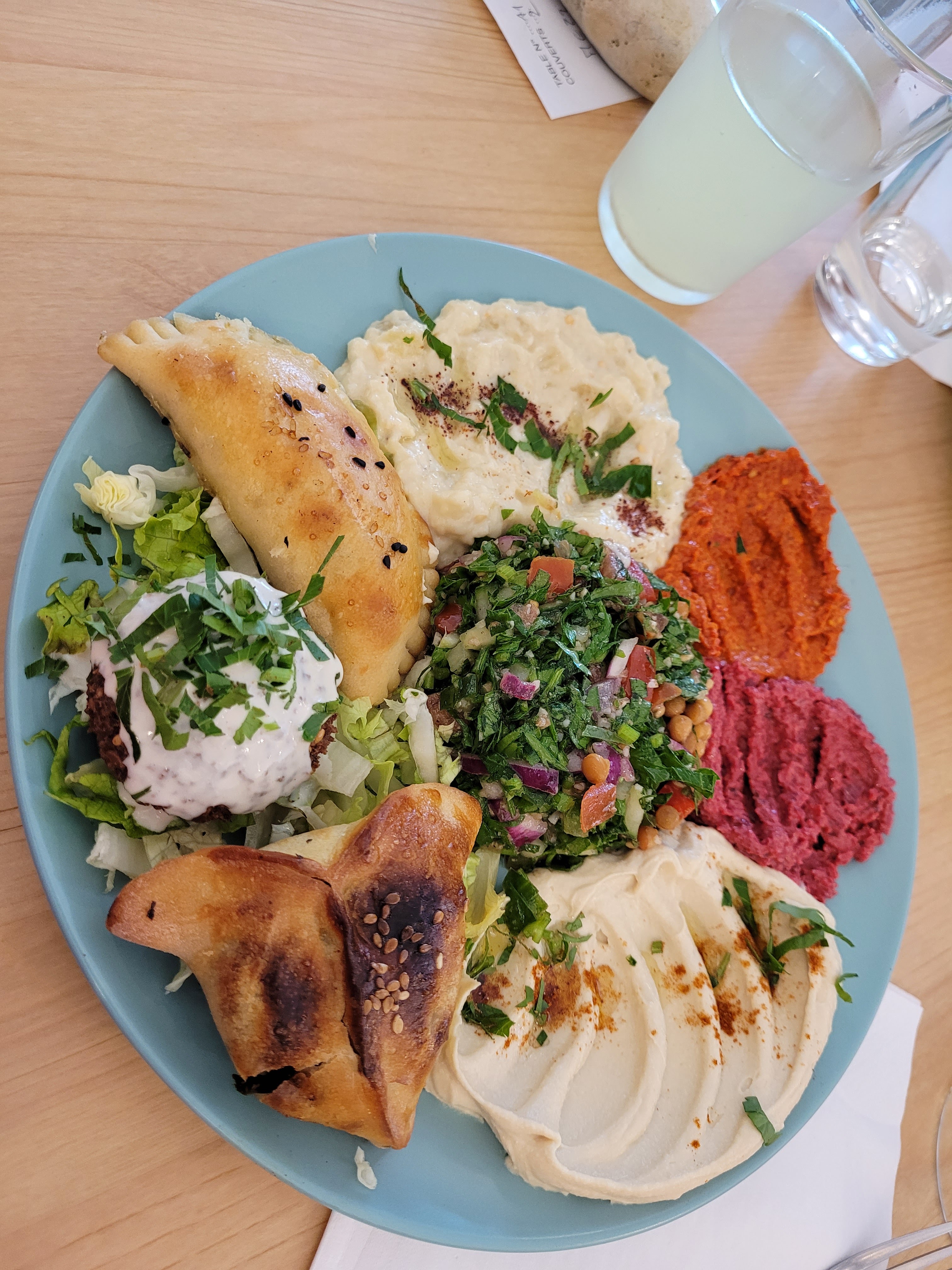 Assiette mezze végétarienne délicieuse, citronnade douce et pâtisseries à tomber. Je recommande.