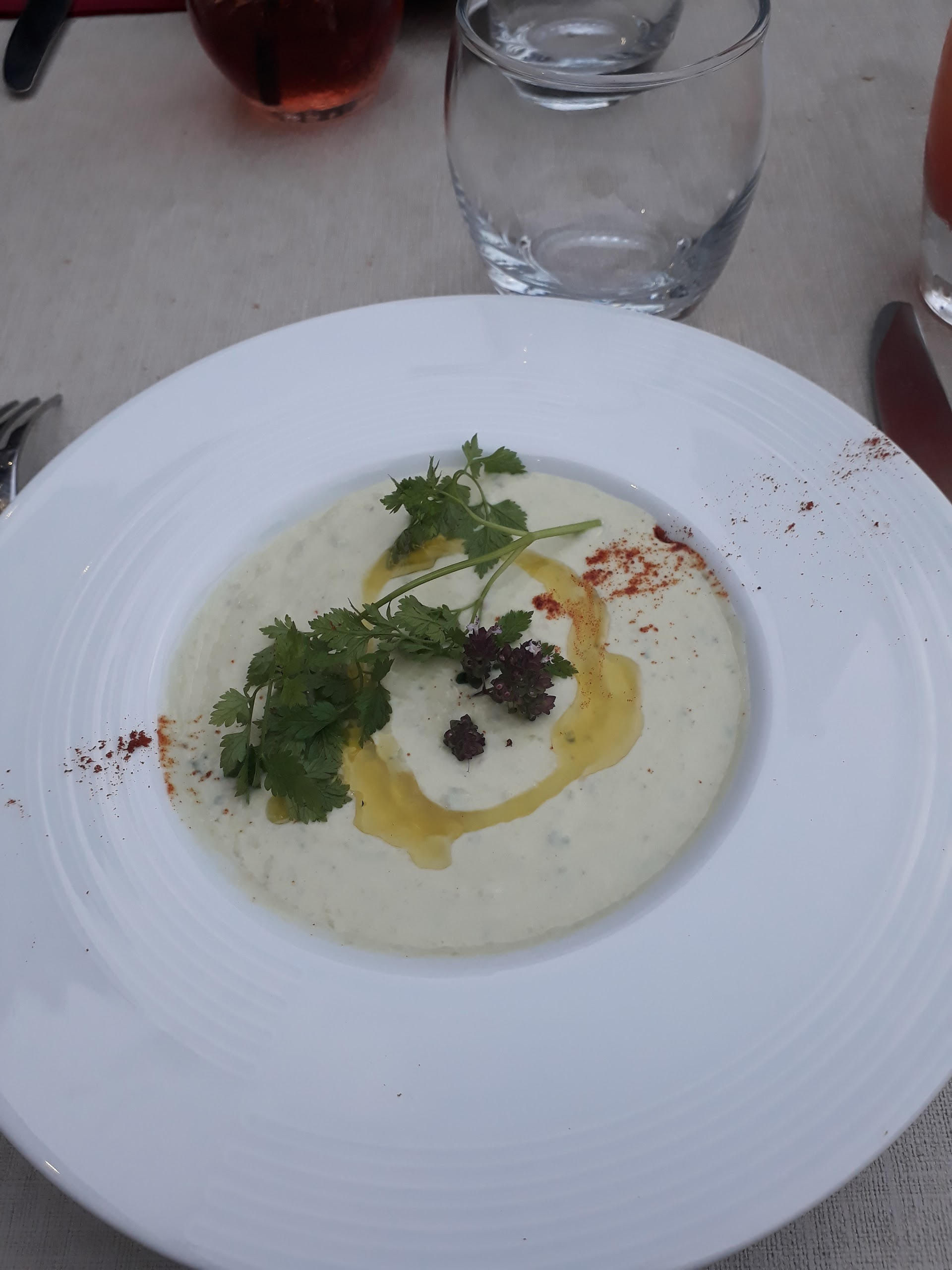 En lisant les commentaires je pense que j'ai du me tromper d'établissement. Sympathique certes. Cadre très appréciable bien sûr. accueil charmant évidemment; Mais…turbot aux petits légumes probablement cuits (le tout) à la vapeur. Turbot trop cuit et filamenteux. Dommage. Sans sel, sans condiments, fade. Ma femme aime le tajine. Déception : une cassolette pleine d'olives et quelques carottes, sans goût, sans condiment (au moins un peu de cumin, non ?). Je ne veux pas être désagréable mais la prochaine fois, s'il y en a une, je prendrai une bière en terrasse et peut être des frites.