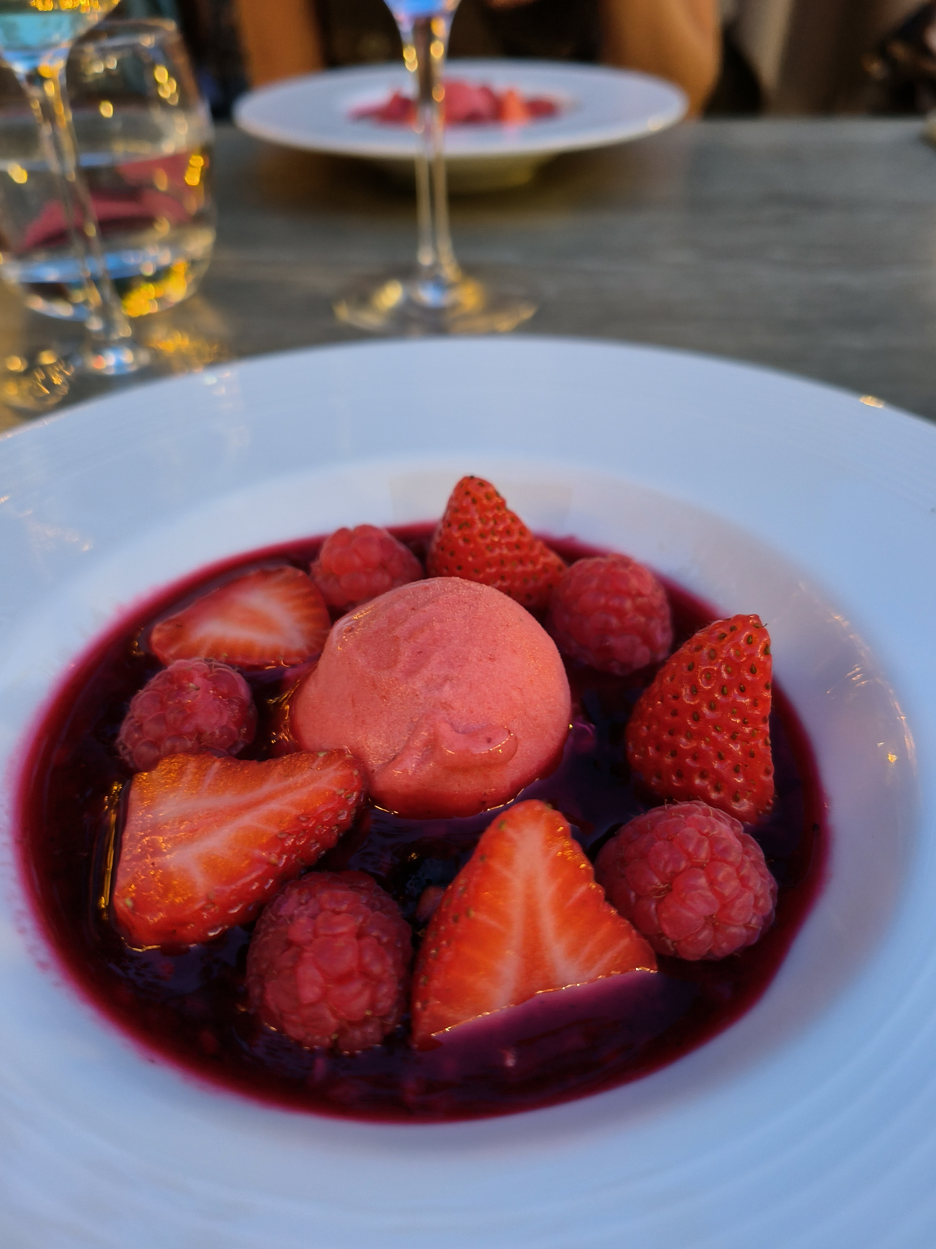 Joli cadre, belle terrasse... Serveurs souriant, bonne accueil. Pour ce qui est de la nourriture... MON DIEU c'est tellement délicieux et innovant. En entrée j'ai pris - une crème brûlée au fromage frais avec glace aux poivrons. Très original et tellement bon. Plat - merlu avec bisque et polenta Un régale Dessert -fondant chocolat aux framboise Si je repasse dans le coin c'est sur que j'y retournerai. Je vous le conseille 👍🏼